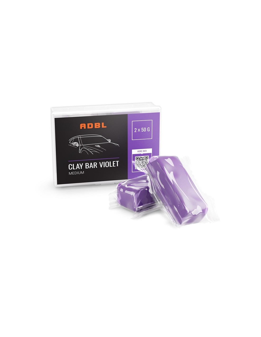 Wysokiej jakości średnio twarda glinka lakiernicza do usuwania zabrudzeń z lakieru oraz szyb obejmujących m.in.: żywicę, smołę, lotną rdzę, odkurz lakierniczy, osady mineralne. Uwaga: przed zastosowaniem zamocz na chwilę w letniej/ciepłej wodzie. Stosuj zawsze z lubrykantem do glinkowania np. ADBL Slippy. Dostosuj rodzaj glinki do twardości lakieru oraz stopnia zanieczyszczenia. Łatwa w użyciu, duża plastyczność Bezpieczna dla lakieru Dokładnie zbiera zanieczyszczenia Opakowanie 2x50g
