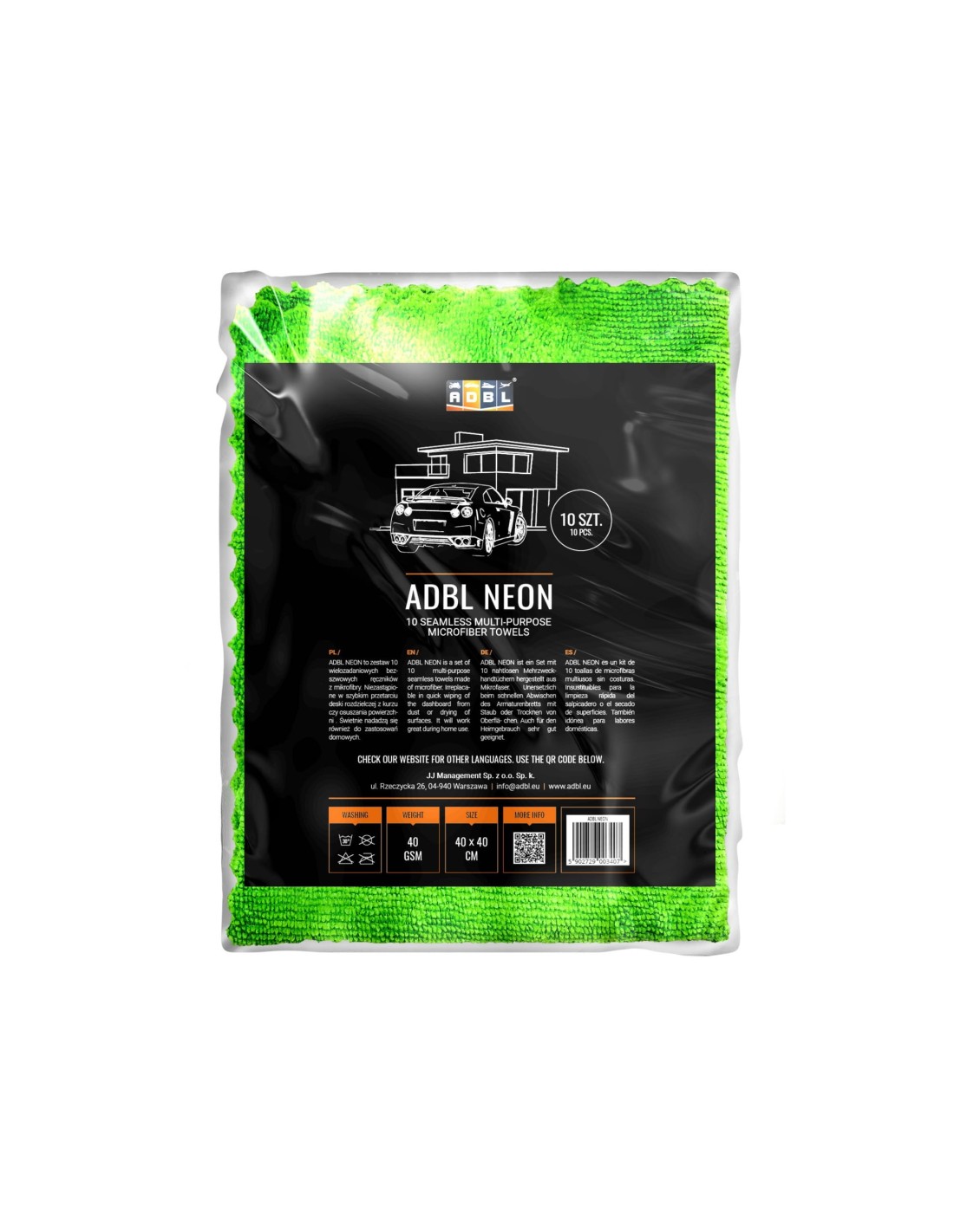 ADBL Neon – to zestaw dziesięciu wielozadaniowych bezszwowych ręczników z mikrofibry. Niezastąpione w szybkim przetarciu deski rozdzielczej z kurzu czy osuszaniu powierzchni. Świetnie nadadzą się również do zastosowań domowych.