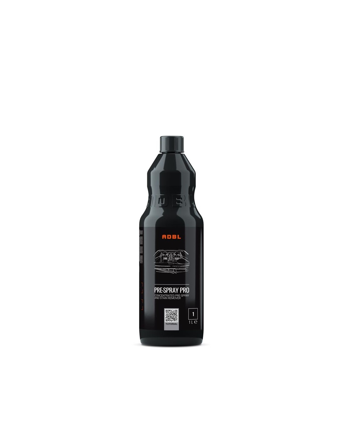 ADBL Pre-Spray Pro – najnowszej generacji produkt do prania materiałowej tapicerki samochodowej, wykładzin i dywaników. Błyskawicznie usuwa najcięższe zabrudzenia. Może służyć również jako odplamiacz. Szybki w działaniu w porównaniu do form proszkowych. Wysoka koncentracja sprawia, że jest to produkt bardzo ekonomiczny w użyciu. Dozowanie: 1:10 jako odplamiacz 1:15 – 1:20 jako pre-spray do bardzo mocnych zabrudzeń 1:30 – 1:60 jako pre-spray od mocnych do świeżych zabrudzeń Sposób użycia: Sporządź roztwór roboczy z ciepłą wodą ok.40°C wg. zaleceń powyżej. Nanieś roztwór za pomocą spryskiwacza na materiał (każdy element przed praniem powinien być dokładnie odkurzony). Miękką szczotką przeszoruj element. Wypłucz pozostałości środka z rozpuszczonymi zabrudzeniami odkurzaczem ekstrakcyjnym z letnią wodą lub roztworem ADBL Textile Rinse. W razie potrzeby powtórz kroki od 2 do 4 i/lub zwiększ stężenie roztworu roboczego. Uwaga! Maksymalny czas kontaktu produktu z tkaniną wynosi ok. 5minut. Nie pozostawiaj środka do wyschnięcia. Zawsze przeprowadź próbę stabilności kolorów. W przypadku bardzo mocnych zabrudzeń, aby przyśpieszyć i wzmocnić efekt płukania tkaniny użyj ADBL Textile Rinse. Dostępne pojemności: 500 ml 1 L 5 L