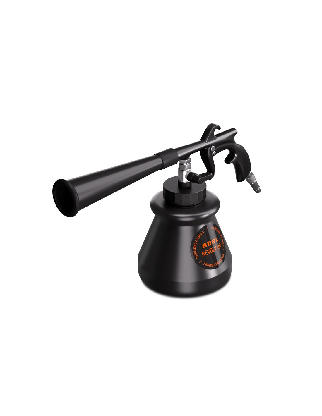 ADBL Revolvair to profesjonalny pistolet pneumatyczny przeznaczony do czyszczenia tapicerki, dywanów, dywaników samochodowych oraz elementów wykonanych z tworzyw sztucznych. Dzięki wykorzystaniu sprężonego powietrza skutecznie odseparowuje cząsteczki brudu od czyszczonej powierzchni, co zapewnia szybki i dokładny efekt. Urządzenie wyposażono w metalową rurkę osadzoną na łożysku, co gwarantuje wysoką efektywność i długą żywotność. Zbiornik o pojemności 800 ml z paskiem kontrolnym umożliwia łatwe monitorowanie ilości używanego środka czyszczącego. Revolvair współpracuje z płynami neutralnymi lub lekko zasadowymi. Dzięki zaworowi regulacyjnemu można precyzyjnie kontrolować ilość podawanego roztworu lub sprężonego powietrza. Pistolet został zaprojektowany z myślą o ergonomii – obrotowy przegub kulowy pozwala na wygodne podłączanie przewodu pod różnym kątem, redukując naprężenia węża i zwiększając komfort pracy. Ergonomiczny uchwyt gwarantuje pewny chwyt i wygodę nawet podczas długotrwałego użytkowania, co czyni ADBL Revolvair narzędziem spełniającym wymagania profesjonalistów i pasjonatów detailingu. Najważniejsze cechy: Skuteczne czyszczenie tapicerki, dywanów i plastików Metalowa rurka na łożysku – trwałość i efektywność Zbiornik 800 ml z paskiem kontrolnym Regulacja ilości roztworu lub sprężonego powietrza Obrotowy przegub kulowy – większa ergonomia pracy Gwint przyłączeniowy G1/4" + szybkozłączka pneumatyczna (EURO/Typ 26) Dane techniczne: Maksymalne ciśnienie robocze: 8 bar Średnica końcówki obrotowej: