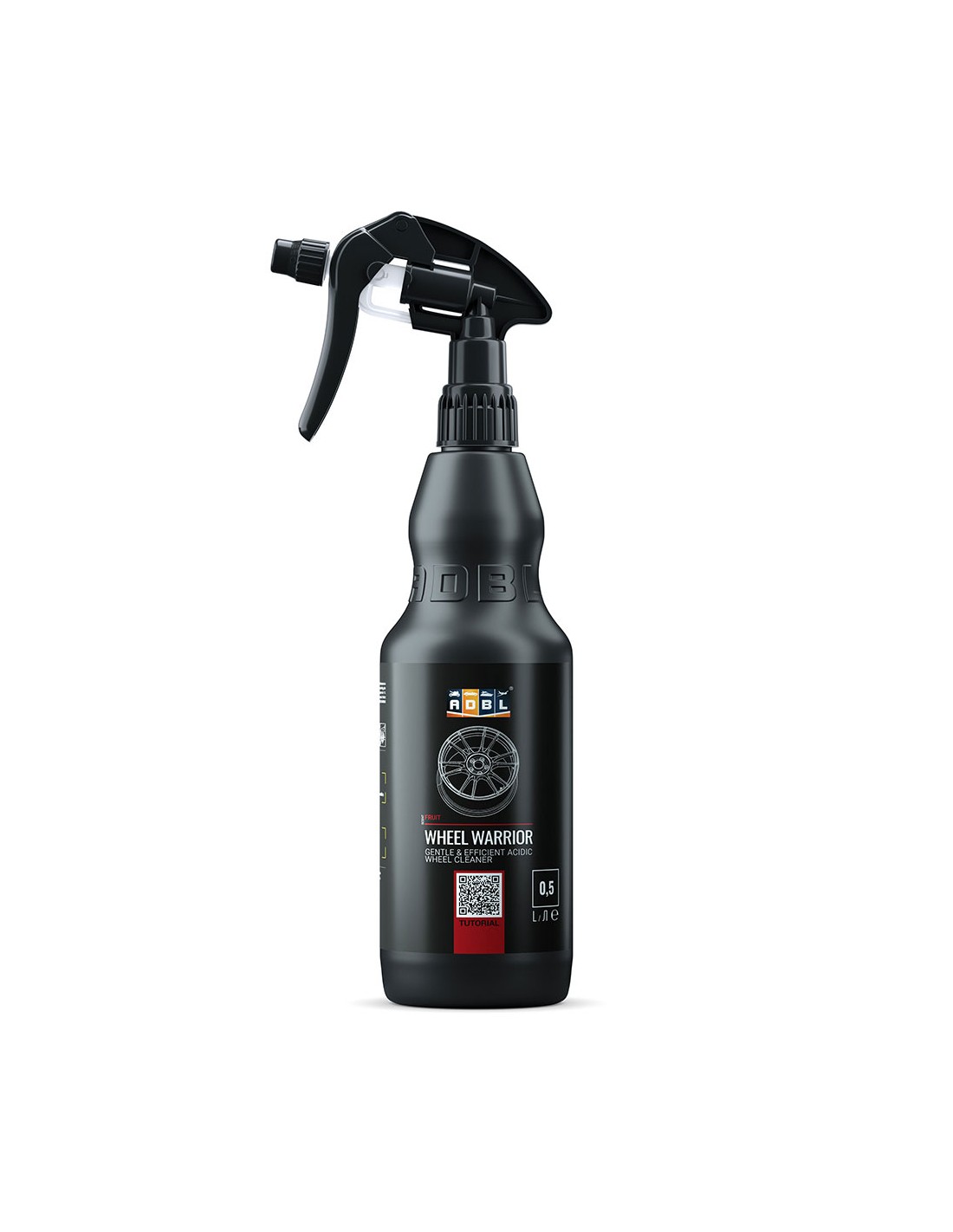 ADBL Wheel Warrior – kwasowy płyn do felg o przyjemnym i intensywnym, owocowym zapachu. Z łatwością rozpuszcza brud, rdzę, osady po twardej wodzie. Doskonale sprawdza się przy okresowym myciu i domywaniu felg, jako etap poprzedzający zastosowanie ADBL Vampire. Można użyć go w formie rozcieńczonej, nawet do 1:4. Sposób użycia: Opłucz felgę z luźnego brudu. Nanieś ADBL Wheel Warrior. Odczekaj kilka minut do zadziałania. W razie potrzeby wypracuj pędzlem lub szczotką. Spłucz dokładnie felgę pod ciśnieniem, a przed aplikacją ADBL Vampire zneutralizuj felgę roztworem ADBL APC i wypłucz ponownie. W razie konieczności powtórz kroki od 1 do 5. Dodatkowe wskazówki: Pracuj na chłodnej feldze. Nie używaj ADBL Wheel Warrior do felg z polerowanego aluminium, anodowanych etc. Używaj tylko na zwilżonej powierzchni. Nie dopuść do kontaktu z lakierem i szkłem. Przed użyciem zawsze sprawdź działanie ADBL Wheel Warrior w mało widocznym miejscu. Przechowywać w chłodnym miejscu. Chronić przed światłem słonecznym. Nie przemrażać. Pojemność: 500 ml