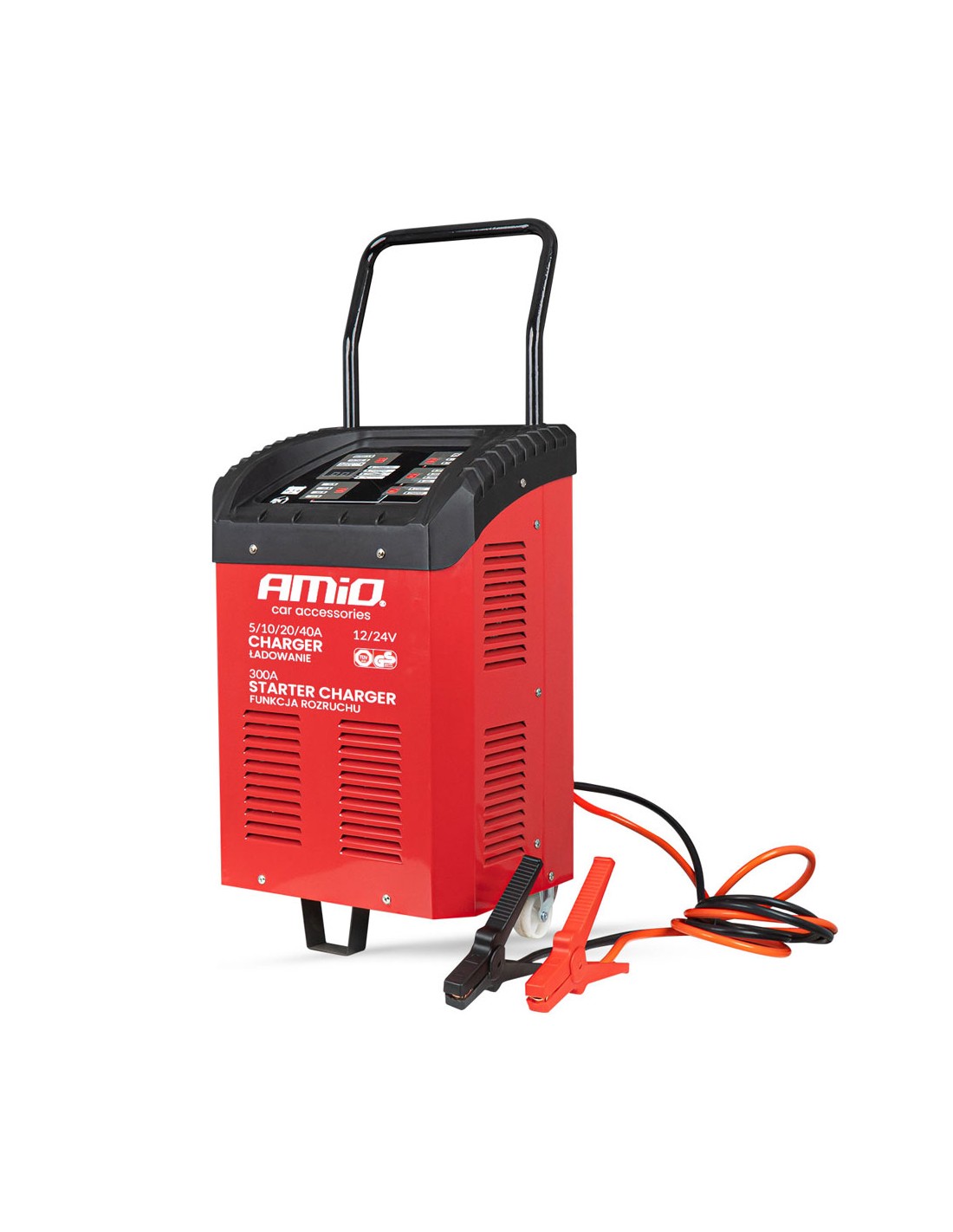 Prostownik AMiO z funkcją rozruchu to zaawansowane, mikroprocesorowe urządzenie stworzone z myślą o profesjonalistach i wymagających użytkownikach. Łączy w sobie funkcje ładowania oraz wspomagania rozruchu akumulatorów 12V i 24V, oferując wydajność, bezpieczeństwo i prostotę obsługi w jednym. Najważniejsze parametry techniczne Napięcie pracy: 12V / 24V Maksymalny prąd ładowania: 40A Funkcja rozruchu (BOOST): do 300A Obsługiwane akumulatory: kwasowo-ołowiowe, AGM, żelowe Zakres pojemności akumulatorów: 20–600Ah Wyświetlacz LED oraz wskaźniki stanu ładowania i błędów System diagnostyczny: analiza stanu akumulatora, poziomu naładowania i sprawności alternatora Zabezpieczenia: przed zwarciem, przegrzaniem, przeciążeniem i odwrotnym podłączeniem biegunów Funkcje i zalety Technologia mikroprocesorowa – pełna kontrola i optymalizacja procesu ładowania i rozruchu. Tryb wysokoprądowy (300A) – szybki start nawet przy rozładowanym akumulatorze. System diagnostyki – pozwala ocenić kondycję akumulatora i alternatora, przedłużając żywotność układu. Ergonomiczna konstrukcja – solidny uchwyt i koła transportowe ułatwiają przemieszczanie urządzenia. Certyfikat TÜV/GS – potwierdzenie najwyższej jakości i bezpieczeństwa użytkowania. Zastosowanie Prostownik AMiO idealnie sprawdzi się w: warsztatach samochodowych i serwisach, firmach transportowych, garażach prywatnych i przydomowych warsztatach, przy obsłudze samochodów osobowych, dostawczych, ciężarowych oraz maszyn budowlanych.