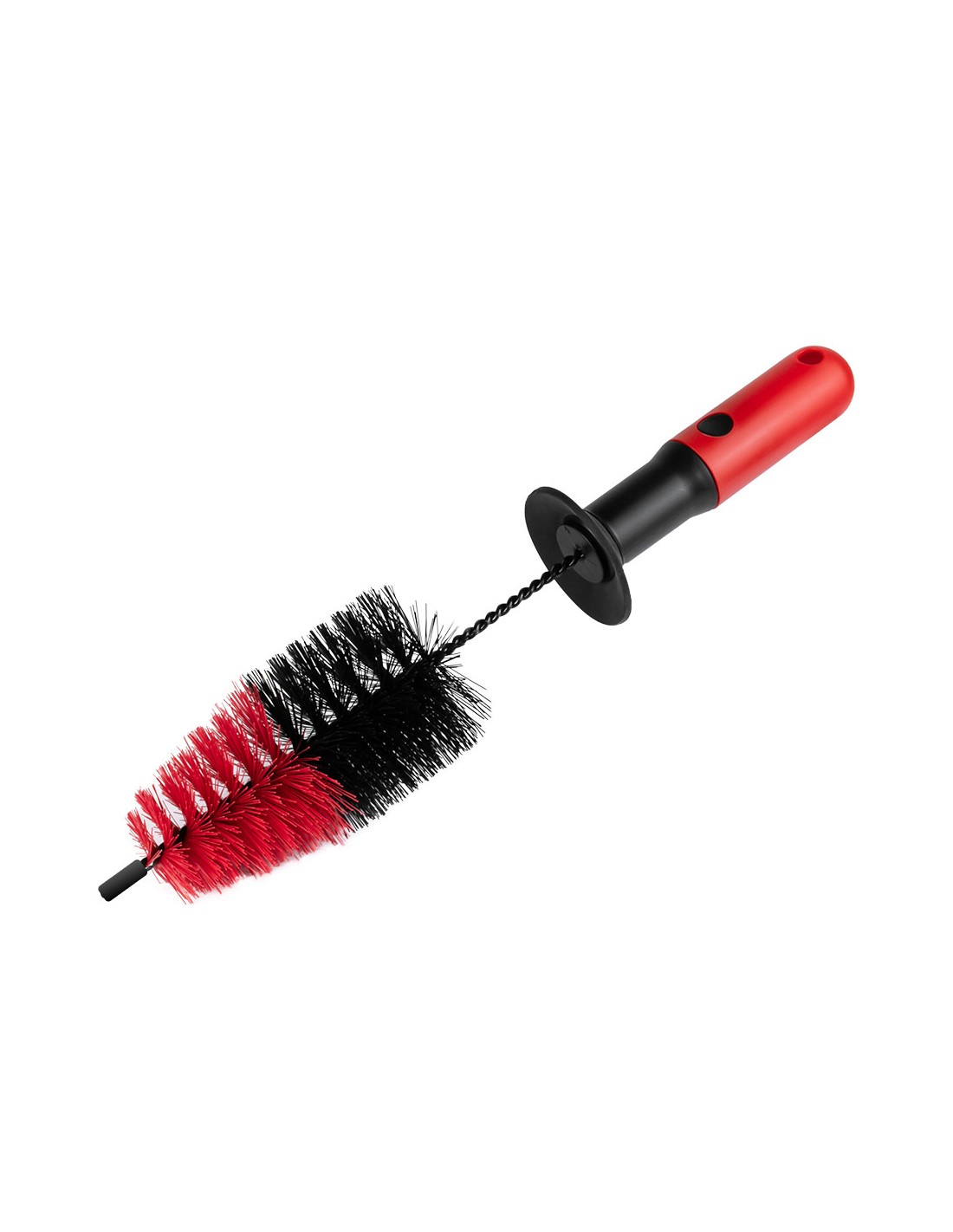 Długa szczotka stożkowa zaprojektowana specjalnie do skutecznego i precyzyjnego czyszczenia felg samochodowych. Dzięki stożkowemu kształtowi włosia umożliwia dotarcie w trudno dostępne miejsca, zapewniając dokładne usunięcie brudu, pyłu hamulcowego i innych zanieczyszczeń. Zalety i cechy produktu: Stożkowy kształt włosia: ułatwia dotarcie do trudno dostępnych miejsc Długa konstrukcja: wygodna obsługa i precyzyjne czyszczenie felg Wytrzymałe włosie: skutecznie usuwa brud, pył i osady, nie rysując powierzchni felgi Ergonomiczna rączka: zapewnia pewny chwyt i komfort pracy