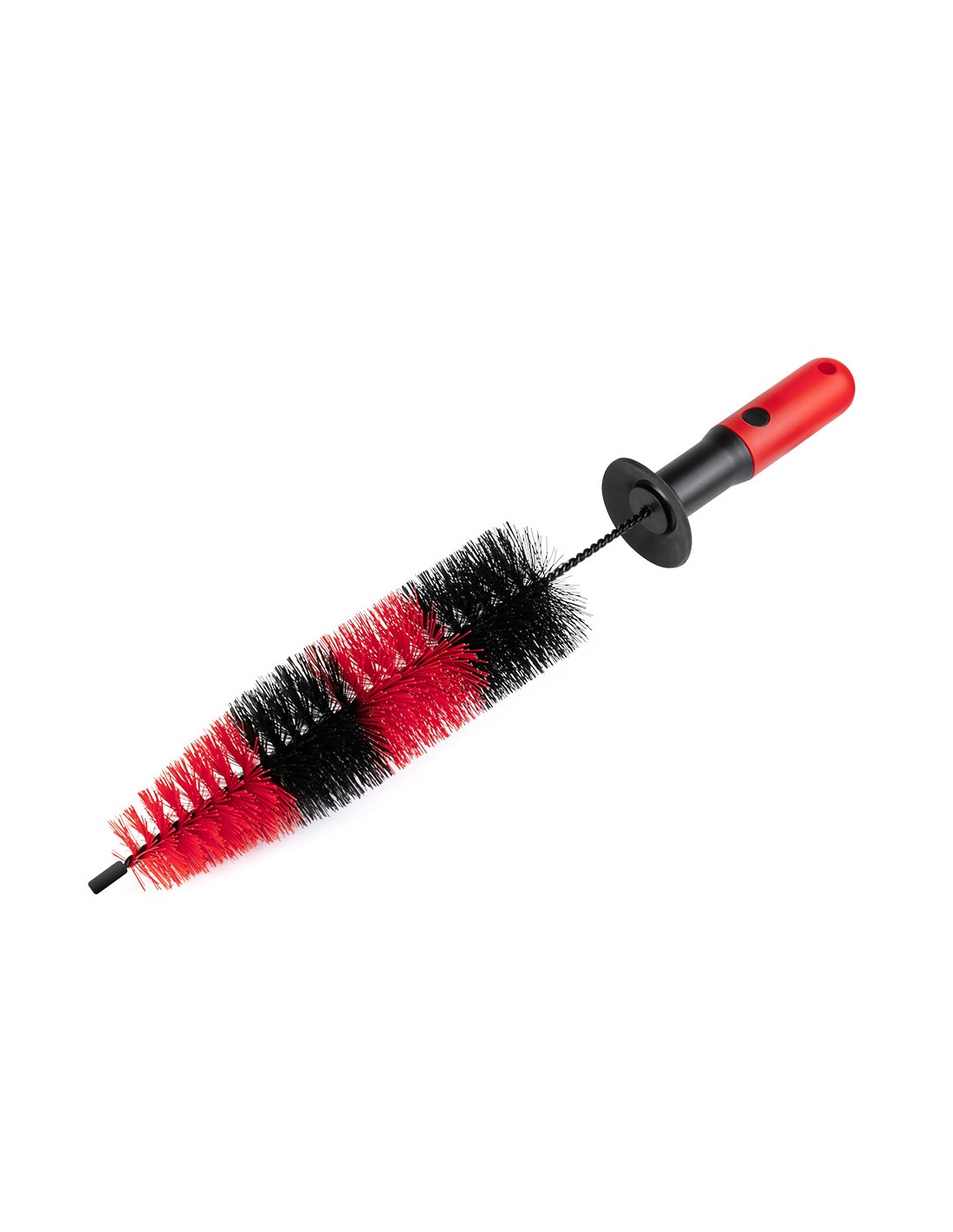Długa szczotka stożkowa zaprojektowana specjalnie do skutecznego i precyzyjnego czyszczenia felg samochodowych. Dzięki stożkowemu kształtowi włosia umożliwia dotarcie w trudno dostępne miejsca, zapewniając dokładne usunięcie brudu, pyłu hamulcowego i innych zanieczyszczeń. Zalety i cechy produktu: Stożkowy kształt włosia: ułatwia dotarcie do trudno dostępnych miejsc Długa konstrukcja: wygodna obsługa i precyzyjne czyszczenie felg Wytrzymałe włosie: skutecznie usuwa brud, pył i osady, nie rysując powierzchni felgi Ergonomiczna rączka: zapewnia pewny chwyt i komfort pracy