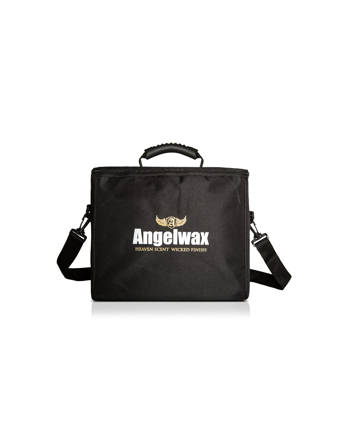 AngelWax Detailers Bag - to torba stworzona dla pasjonatów detailingu, w celu ułatwienia przechowywania i przenoszenia wszystkich wosków, quick detailerów, akcesoriów i innych tego typu produktów. Jest ona wyposażona w uchwyt, ramię oraz sztywną podstawę, co czyni ją wygodną w użytkowaniu. Dodatkowym atutem jest elegancki czarny kolor, z dużym logiem marki AngelWax na środku.