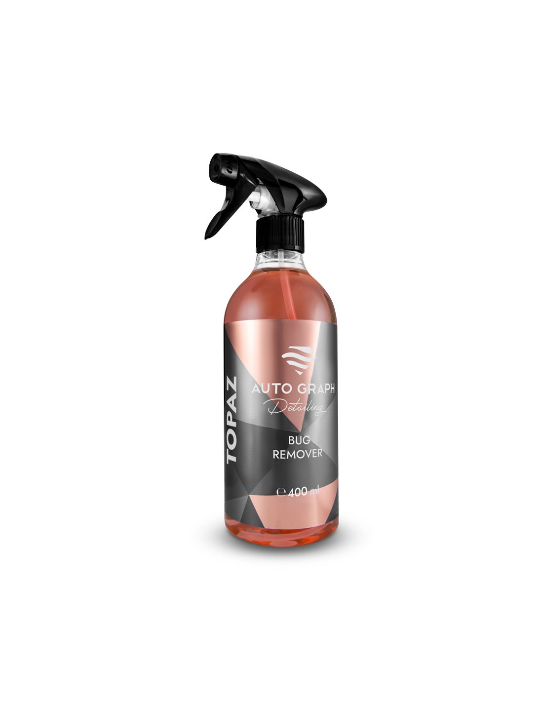 Auto Graph Topaz Bug Remover – poszukujesz skutecznego preparatu do usuwania owadów? Wypróbuj Topaz Bug Remover – produkt bezpieczny dla lakieru, szkła oraz elementów plastikowych i chromowanych. Rozbite na aucie insekty mogą prowadzić do uszkodzenia struktury lakieru, dlatego bardzo ważne jest ich zmywanie na bieżąco. Sposób użycia: Rozprowadź preparat na zabrudzonych, nierozgrzanych elementach karoserii, odczekaj około 60 sekund, a następnie spłucz wodą pod ciśnieniem. W razie potrzeby powtórz czynność. Nie aplikuj produktu bezpośrednio na słońcu i nie dopuść do jego wyschnięcia. Pojemność: 400 ml