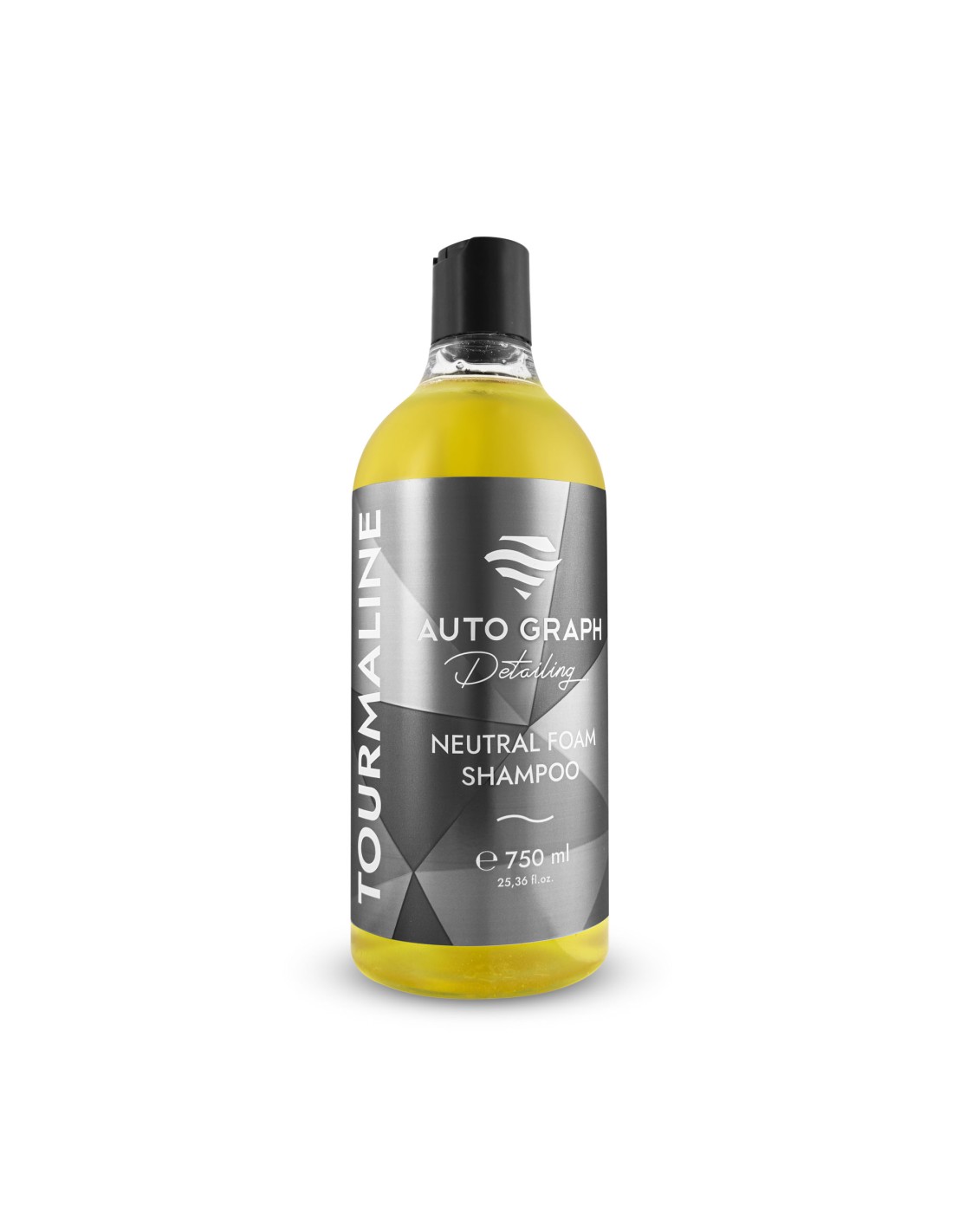 Auto Graph Tourmaline – to silnie skoncentrowany szampon o neutralnym pH do mycia i pianowania samochodów. Z łatwością usuwa brud, odtłuszcza i nabłyszcza lakier. Czyści delikatnie, ale zarazem efektywnie. Bardzo łatwy do wypłukania. Zalecane dawkowanie 25-50 ml / 10 L wody. W roztworze 2% może być stosowany jako piana. Z Tourmaline nie ma nudy – paleta kolorów i zapachów do wyboru! Właściwości: posiada bardzo dobre właściwości czyszczące daje obfitą, gęstą pianę ma neutralne pH może być stosowany do oprysku wstępnego jak i mycia ręcznego nie pozostawia zacieków zawiera inhibitory korozji Sposób użycia: Wykonaj odpowiednie rozcieńczenie w zależności od celu zastosowania, twardości wody i stopnia zanieczyszczeń. Rekomendowane rozcieńczenie to 2% – piana, 25-50 ml / 10 L wody – szampon. Wykonaj oprysk lub umyj auto ręcznie. Spłucz obficie wodą demineralizowaną. Wskazówki: przeprowadzaj pracę możliwie w optymalnych warunkach – unikaj wysokich temperatur, wilgotności, słońca pracuj w pomieszczeniu nie pozostawiaj produktu do wyschnięcia stosuj rękawice i odzież ochronną optymalna temperatura przechowywania 5-25°C Zapach: perfumed Pojemność: 750 ml