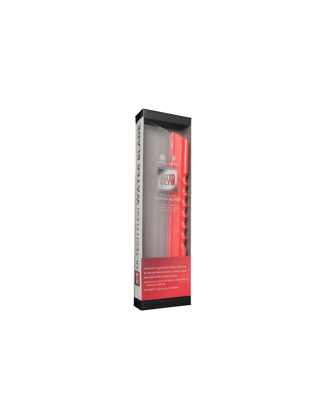 Najszybsza droga do usunięcia wody z samochodu, jest szczególnie przydatna dla większych pojazdów z dużą ilością płaskich powierzchni. Silikonowa konstrukcja stanowi idealne połączenie sztywności przy jednoczesnym utrzymaniu zdolności do wyginania wokół konturów nadwozia samochodu. Bez twardej powierzchni, jest całkowicie bezpieczny w użyciu, nie porysuje ani nie zostawi śladów pod warunkiem, że wcześniej samochód został dokładnie wyczyszczony. Nie używaj do usuwania wody deszczowej lub śniegu, gdyż razem z nimi mogą opaść zabrudzenia. Wskazówka profesjonalisty: Elastyczne ostrza silikonowe miały przez wiele lat złą opinię, często na skutek błędnego użycia. Jedyną możliwością aby ostrze mogło zarysować jest to, że obszar nie jest poprawnie wyczyszczony i brud utknął pod ostrzem i jest ciągnięty po karoserii. Utrzymuj karoserię i ostrze Hi-Tech Flexi Water Blade czyste i dzięki temu nie będziesz mieć tego problemu.