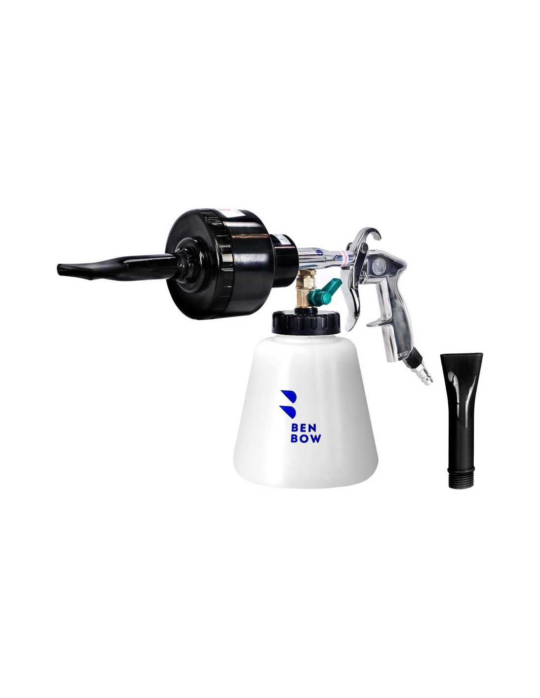 Pistolet pianowy BenBow Classic przetwarza szampon lub inne kosmetyki samochodowe w aktywną warstwę piany na lakierze pojazdu. Model Classic jest niedrogą alternatywą dla pistoletu do piany BenBow Premium. Piana jest nieco grubsza i cięższa, dlatego czas aplikacji jest nieco krótszy. Nazwa: Classic 012 Black pianownica pneumatyczna 2 dysze Kod produktu: 000012 Waga: 1,02 kg Zbiornik na płyn: 1 litr