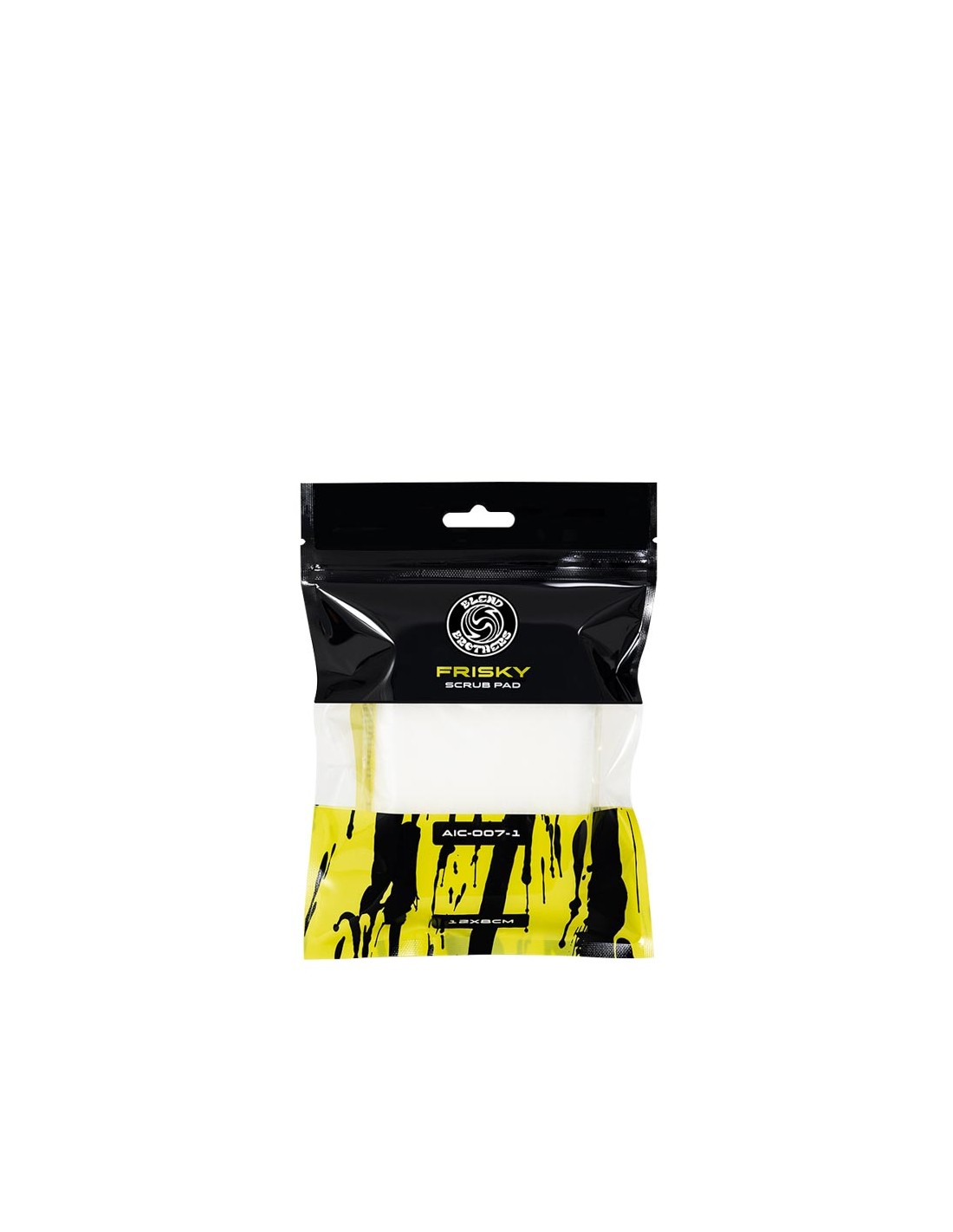 FRISKY - Scrub Pad FRISKY Scrub Pad to dwustronna gąbka do skutecznego czyszczenia wnętrza samochodu – plastików, gumy, skóry oraz tapicerki materiałowej. Jedna strona gąbki pokryta jest nowoczesnym włóknem o wyjątkowych właściwościach czyszczących, natomiast druga to tradycyjna mikrofibra wysokiej jakości. Pad umożliwia skuteczne i bezpieczne usuwanie nawet najtrudniejszych zabrudzeń z różnych powierzchni, a jego kompaktowy rozmiar ułatwia dostęp do trudno dostępnych miejsc. Najwyższa jakość użytych materiałów gwarantuje długotrwałe użytkowanie FRISKY Scrub Pad. Rozmiar 12x8 cm