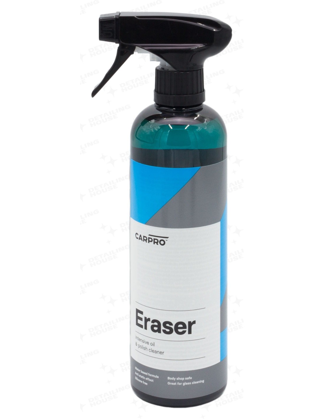 CarPro Eraser – to produkt skutecznie usuwający pozostałości olejów, silikonów i past polerskich. Idealnie odtłuszcza powierzchnię lakieru przed nałożeniem powłoki ochronnej lub wosków. Świetnie sprawdza się przed nałożeniem powłoki C.Quartz.