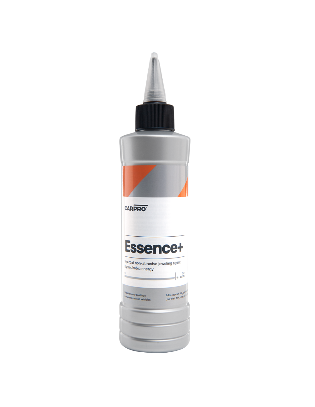 Essence PLUS jest unikatowym produktem z kwarcem SiO2 składającym się ze składników naprawiających powłoki ceramiczne, żywice kwarcowe i nanocząsteczki nadające efekt hydrofobowy! Koncepcją CarPro było stworzenie produktu, który naprawi powłokę kwarcową bez konieczności usuwania starej powłoki mechanicznie i nakładania nowej. Essence PLUS naprawia rysy koliste "swirle", podkręcając błysk, efekt hudrofobowy i oczyszczając bazową powłokę. Odświeżenie powłoki wydłuża jej żywotność o kolejny rok czasu!