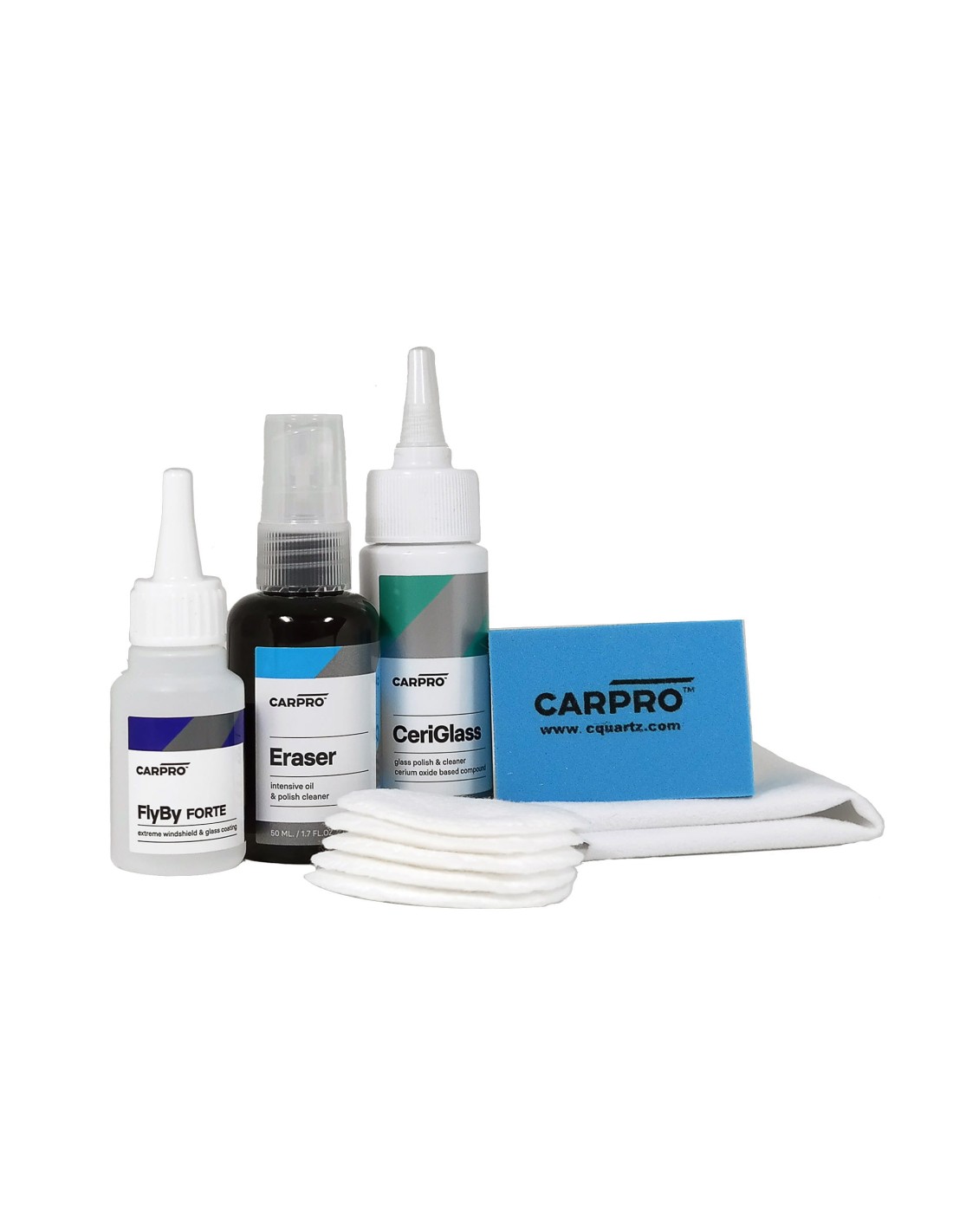 CarPro FlyBy Forte Full Kit – to nowa, bardzo zaawansowana technologicznie powłoka hydrofobowa do szyb. Formuła tego produktu została zaprojektowana specjalnie w celu zapewniania długotrwałej wytrzymałości i odporności na ścieranie i chemikalia. Dodatkowo zapewnia ochronę przed delikatnymi zarysowaniami.