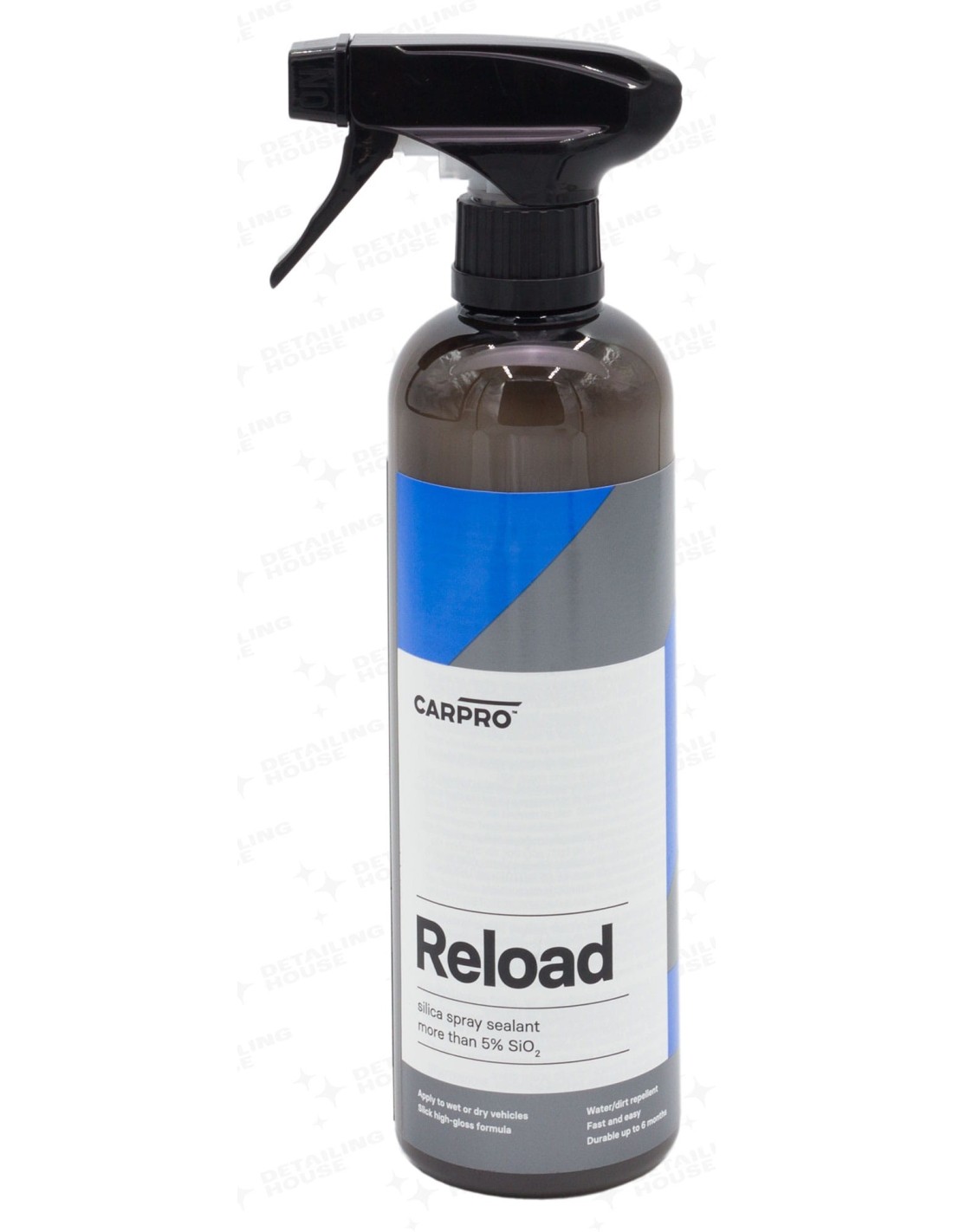 CarPro Reload – początkowo stworzony jako produkt do bieżącej konserwacji powłok kwarcowych, równie dobrze sprawdza się jako osobna forma ochronny lakieru nawet do 6 miesięcy. Zawiera w swoim składzie jeden z podstawowych składników powłok ochronnych czyli SiO2. Nadaje lakierowi niesamowitego przyciemnienia, głębi, śliskości oraz hydrofobowości, dzięki czemu bieżąca pielęgnacja staje się banalnie łatwa. Produkt może być aplikowany na suchy i mokry lakier.