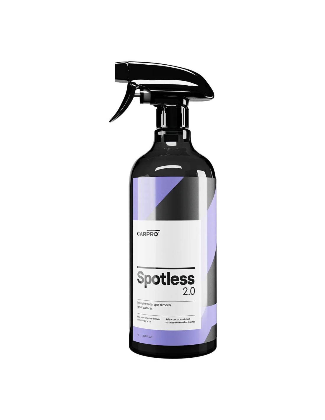 Spotless 2.0 bezpiecznie neutralizuje plamy i zacieki z twardej wody na plastikach, emblematach, szkle, lakierze i nowoczesnych felgach, które pokryte są lakierem bezbarwnym. Jest niezbędnym produktem do przygotowania matowego lakieru do aplikacji powłoki ochronnej lub konserwacji. Dzięki opatentowanej formule starannie zbilansowanych kwasów bezpiecznie rozkłada osady mineralne na większości twardych materiałów i może być stosowany na powłokach CQuartz, pomagając utrzymać pojazd w czystości.