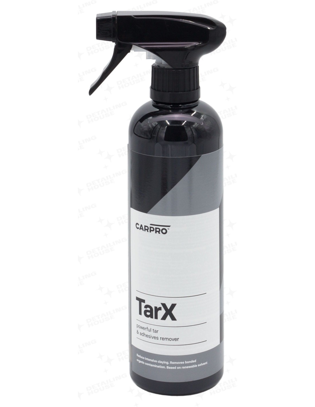 CarPro TarX – to profesjonalny środek do usuwania asfaltu, smoły, kleju i pozostałości owadów. Stworzony na bazie naturalnych rozpuszczalników. Bezpieczny w użyciu na większości powierzchni pojazdu. Błyskawiczny w działaniu.