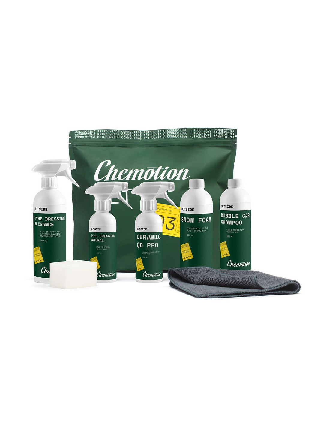 Outside Set to starannie dobrany zestaw kosmetyków i akcesoriów do kompleksowego mycia oraz zabezpieczenia samochodu. Idealny zarówno dla pasjonatów detailingu, jak i profesjonalistów. Dzięki niemu skutecznie umyjesz karoserię, odświeżysz felgi i zabezpieczysz lakier oraz elementy gumowe. W zestawie znajdziesz: Snow Foam 500 ml – aktywna piana do wstępnego mycia Bubble Car Shampoo 500 ml – delikatny, ale skuteczny szampon Tyre and Wheel Cleaner 500 ml – środek do czyszczenia felg i opon Ceramic QD PRO 250 ml – quick detailer z SiO2 Tyre Dressing Natural 250 ml – dressing do opon o matowym lub satynowym wykończeniu Mikrofibra premium – do bezpiecznego osuszania i aplikacji Aplikator do opon – dla precyzyjnego nałożenia dressingu Zalety: Wszystko, czego potrzebujesz do pielęgnacji zewnętrznej auta Wysoka wydajność – utrzymuje auto w czystości przez cały sezon Stylowe opakowanie – świetny pomysł na prezent Zadbaj o swoje auto z zestawem Outside Set!