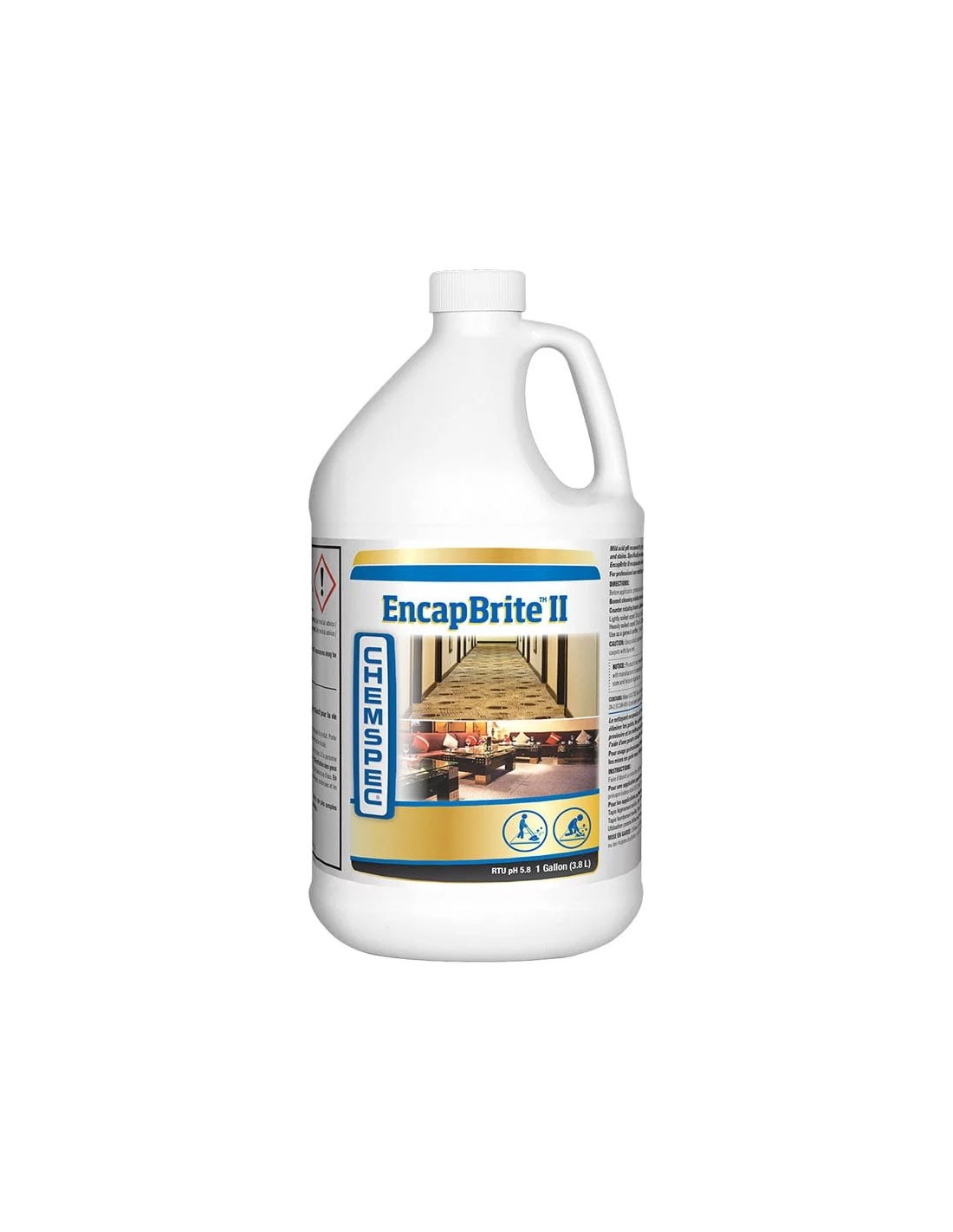 Chemspec Encap Brite II Bonnet 3,78 L to profesjonalny preparat do czyszczenia dywanów i wykładzin metodą bonetowania, stworzony specjalnie do pielęgnacyjnego czyszczenia przy niskiej wilgotności. Dzięki formule z nadtlenkiem wodoru skutecznie usuwa zabrudzenia codzienne, a także trudniejsze plamy po kawie, herbacie, napojach gazowanych, tuszu, oleju czy smarze.