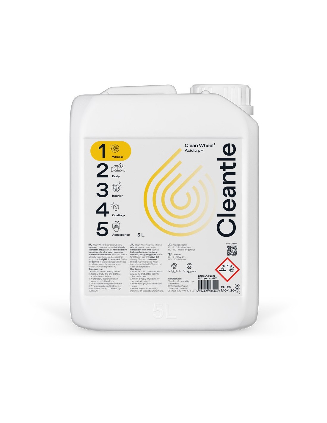 Cleantle Clean Wheel2 5L - kwasowy preparat do usuwania trudnych zabrudzeń z felg