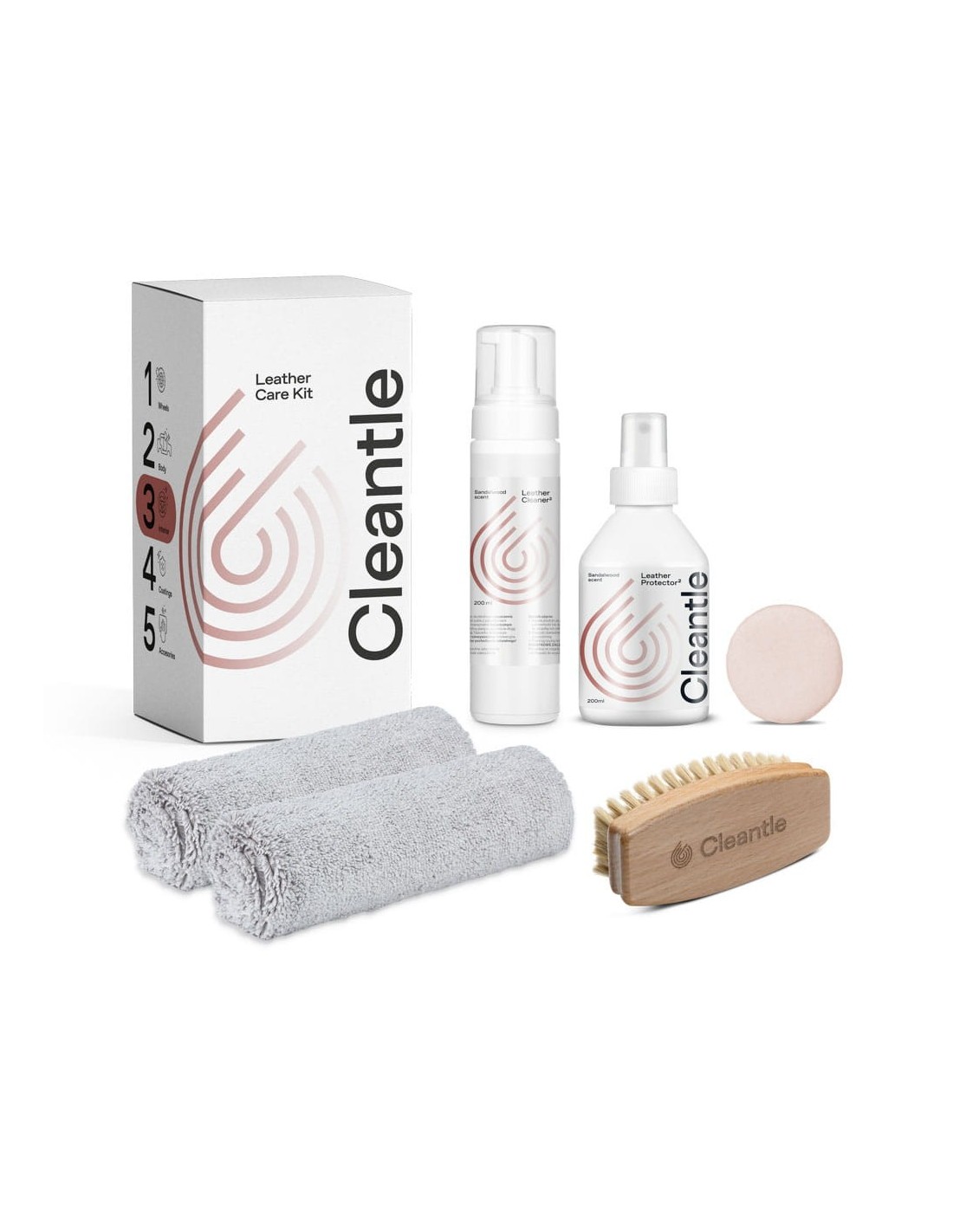 CLEANTLE Leather Care Kit to profesjonalny zestaw do kompleksowej pielęgnacji skórzanych powierzchni, stworzony z myślą o utrzymaniu najwyższej jakości i estetyki skóry w samochodzie. Ten wszechstronny zestaw zawiera wszystko, co niezbędne do skutecznego czyszczenia, odżywiania i ochrony skórzanych elementów, zapewniając im długotrwałą trwałość i piękny wygląd.