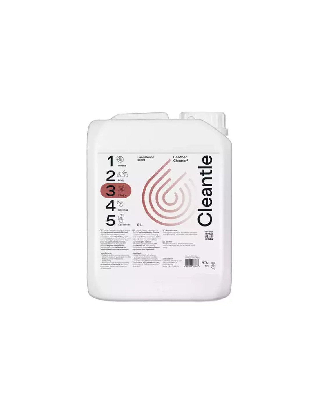 Leather Cleaner to produkt, którego przeznaczeniem jest czyszczenie tapicerki wykonanej ze skóry. Produkt łączy w sobie delikatność i bezpieczeństwo dla czyszczonych powierzchni jednocześnie bez problemu poradzi sobie z usunięciem typowych zabrudzeń zalegających na skórze. Leather Cleaner cechuje się stabilną pianą wydłużającą czas pracy z produktem i redukującą ryzyko przemoczenia czyszczonej powierzchni. Produkt pozostawia skórę miękką oraz zapobiega jej nadmiernemu wysuszeniu. Produkt opracowany z uwzględnieniem ekologii, prawie 100% składników potrzebnych do stworzenia produktu ma pochodzenie naturalne.