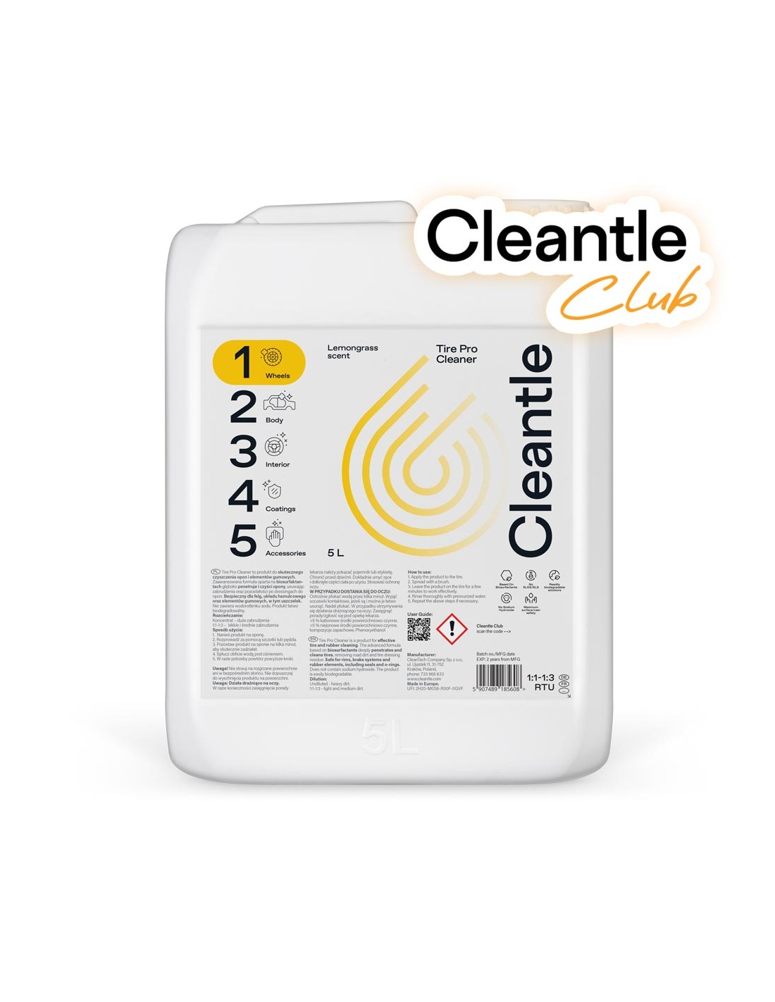 Tire Pro Cleaner to produkt do skutecznego czyszczenia opon i elementów gumowych. Zaawansowana formuła oparta na biosurfaktantach głęboko penetruje i czyści opony, usuwając zabrudzenia oraz pozostałości po dressingach do opon. Bezpieczny dla felg, układu hamulcowego oraz elementów gumowych, w tym uszczelek. Nie zawiera wodorotlenku sodu. Produkt łatwo biodegradowalny. Cechy produktu: Wysoce skuteczny w czyszczeniu opon i elementów gumowych Usuwa pozostałości po dressingach do opon Oparty na biosurfaktantach Bezpieczny dla czyszczonych powierzchni Łatwo biodegradowalny Rozcieńczanie: Koncentrat – duże zabrudzenia. 1:1-1:3 – lekkie i średnie zabrudzenia. Sposób użycia: Nanieś produkt na oponę. Rozprowadź za pomocą szczotki lub pędzla. Pozostaw produkt na oponie na kilka minut, aby skutecznie zadziałał. Spłucz obficie wodą pod ciśnieniem. W razie potrzeby powtórz powyższe kroki. Uwaga! Nie stosuj na rozgrzane powierzchnie ani w bezpośrednim słońcu. Nie dopuszczaj do wyschnięcia produktu na powierzchni. Uwaga: Działa drażniąco na oczy. W razie konieczności zasięgnięcia porady lekarza należy mpokazać pojemnik lub etykietę. Chronić przed dziećmi. Dokładnie umyć ręce i dotknięte części ciała po użyciu. Stosować ochronę oczu. Pojemność 5L