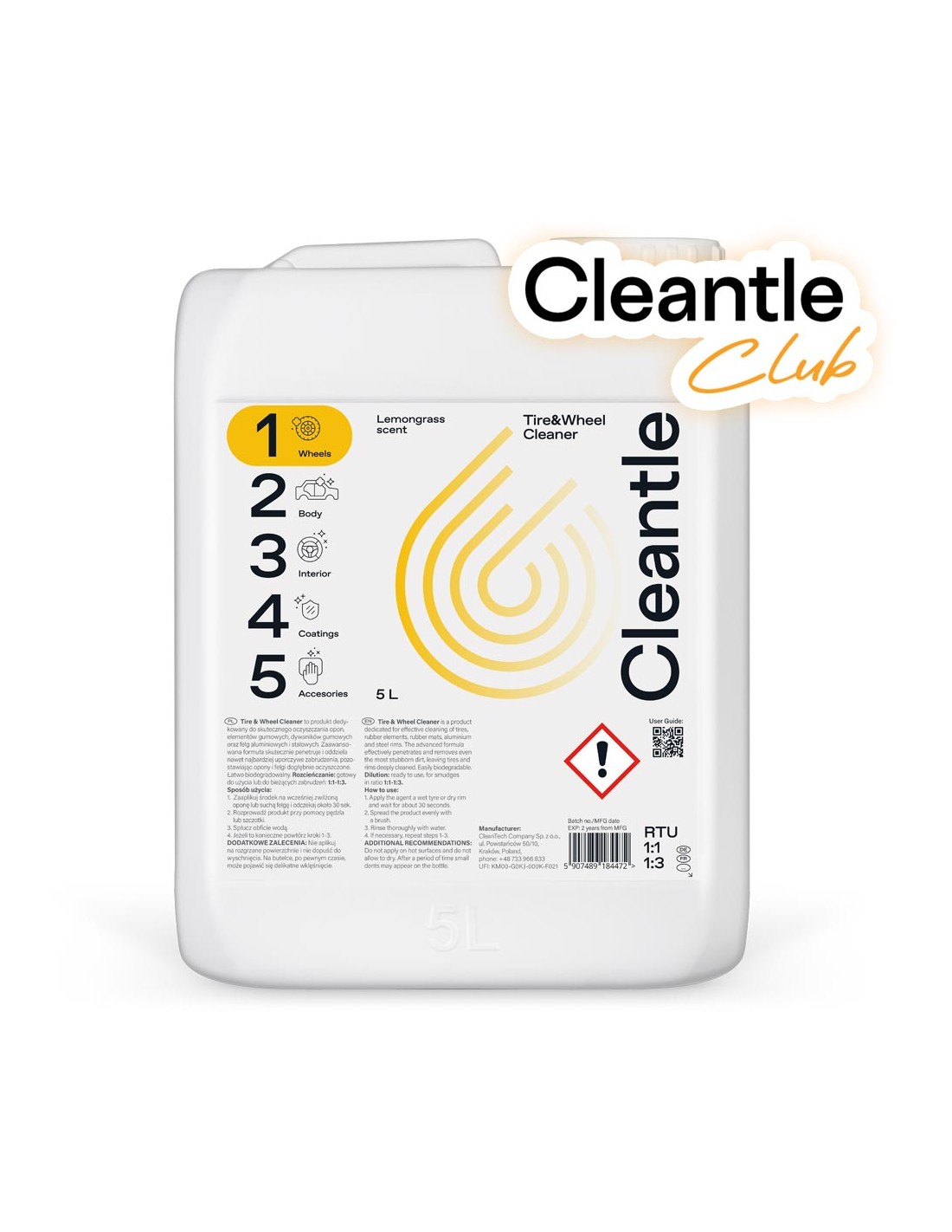 Cleantle Tire&Wheel Cleaner – to produkt przeznaczony do szybkiego i skutecznego czyszczenia felg aluminiowych i stalowych, nadkoli, a także elementów gumowych m.in. opon i dywaników. Zaawansowana formuła skutecznie penetruje i oddziela nawet najbardziej uporczywe zabrudzenia, pozostawiając felgi i opony dogłębnie oczyszczone. Najważniejsze cechy: nie zawiera wodorotlenku sodu, SLES i SLS w składzie bardzo wysokie bezpieczeństwo dla czyszczonych powierzchni wysoka siła czyszczenia widoczna piana pomagająca zidentyfikować miejsca, gdzie produkt został naniesiony łatwe i szybkie spłukiwanie produktu łatwo biodegradowalny Rozcieńczanie: Produkt gotowy do użycia. W przypadku bieżących zabrudzeń produkt można rozcieńczony – 1:1-1:3. Sposób użycia: Nanieść środek na wcześniej zwilżoną oponę lub suchą felgę i odczekać ok. 30 sekund. Rozprowadzić produkt przy pomocy pędzelka lub szczotki. Spłukać obficie wodą pod ciśnieniem. Jeżeli to koniecznie powtórzyć kroki 1-3. Dodatkowe zalecenia: Nie aplikować na rozgrzane powierzchnie i nie dopuszczać do wyschnięcia. Pojemność: 5 L
