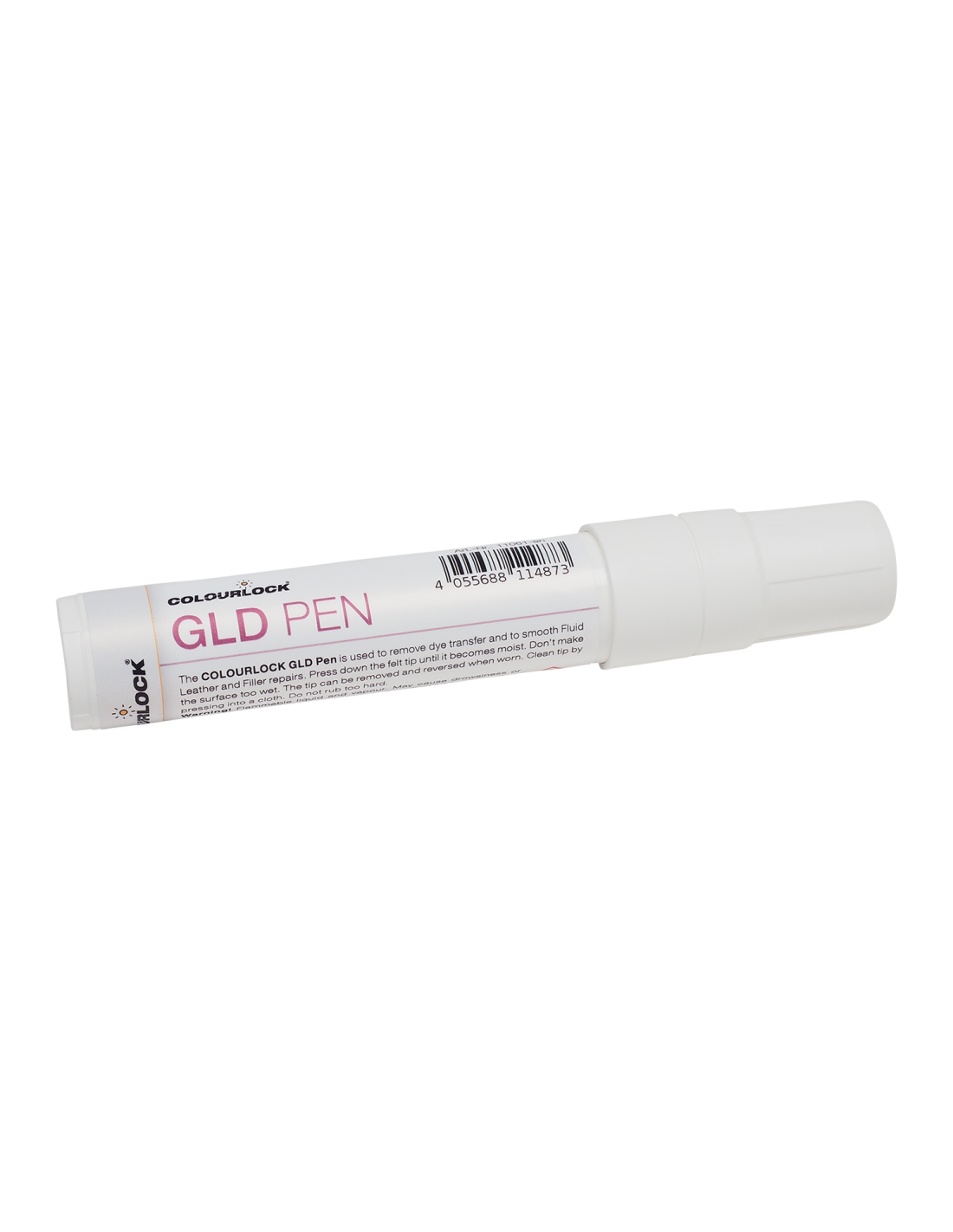 Colourlock Sztyft GLD – do użytku profesjonalnego to pomocniczy środek przy renowacji skór licowych zamkniętych. GLD pomaga usunąć starą źle trzymającą się farbę. Dzięki rozpuszczalnikowi stara farba zostaje rozluźniona, a stare impregnaty można zmyć. Za pomocą rozpuszczalnika można przenieść nadmiar starej farby w miejsce uszkodzenia. Sposób użycia: Środek aplikujemy punktowo następnie należy przetrzeć powierzchnię skóry mikrofibrą. Jeśli jest taka potrzeba powtarzamy zabieg aż do momentu pojawienia się na szmatce farby. Trzeba przerwać w momencie gdy skóra staje się lekko klejąca. W tym momencie można przystąpić do malowania skóry. Nie należy stosować w skórach anilinowych, welurach i nubukach.