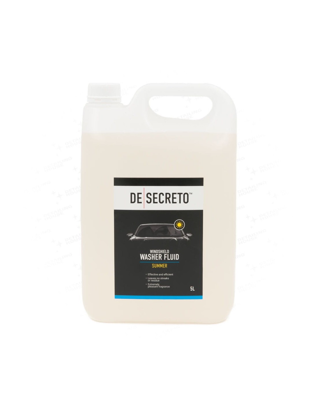 De Secreto Płyn Do Spryskiwaczy Letni – wysokiej jakości, profesjonalny płyn letni do spryskiwaczy o innowacyjnej formule. Wyjątkowo szybko i skutecznie usuwa zabrudzenia powstałe podczas użytkowania samochodu. Bezpieczny dla reflektorów. Ma wyjątkowo przyjemny zapach.