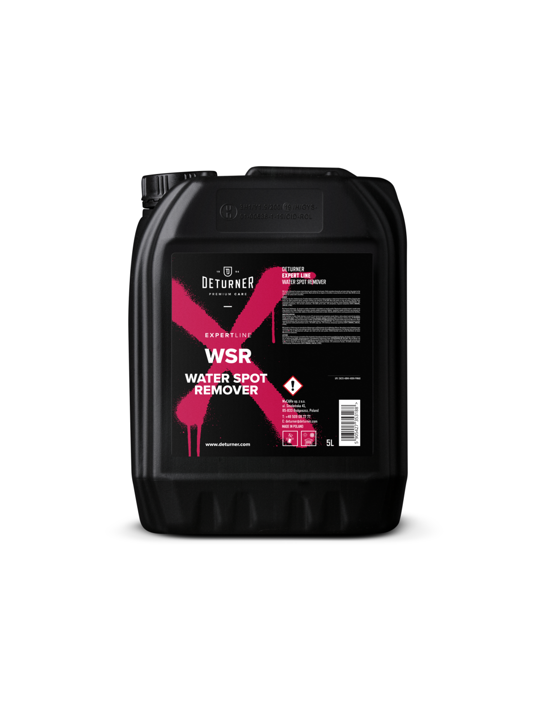 Deturner WSR 5L to niezawodny środek do pielęgnacji pojazdów, zapewniający profesjonalne efekty w usuwaniu osadów po twardej wodzie oraz mineralnych zabrudzeń, co pozwala utrzymać auto w doskonałej kondycji wizualnej.