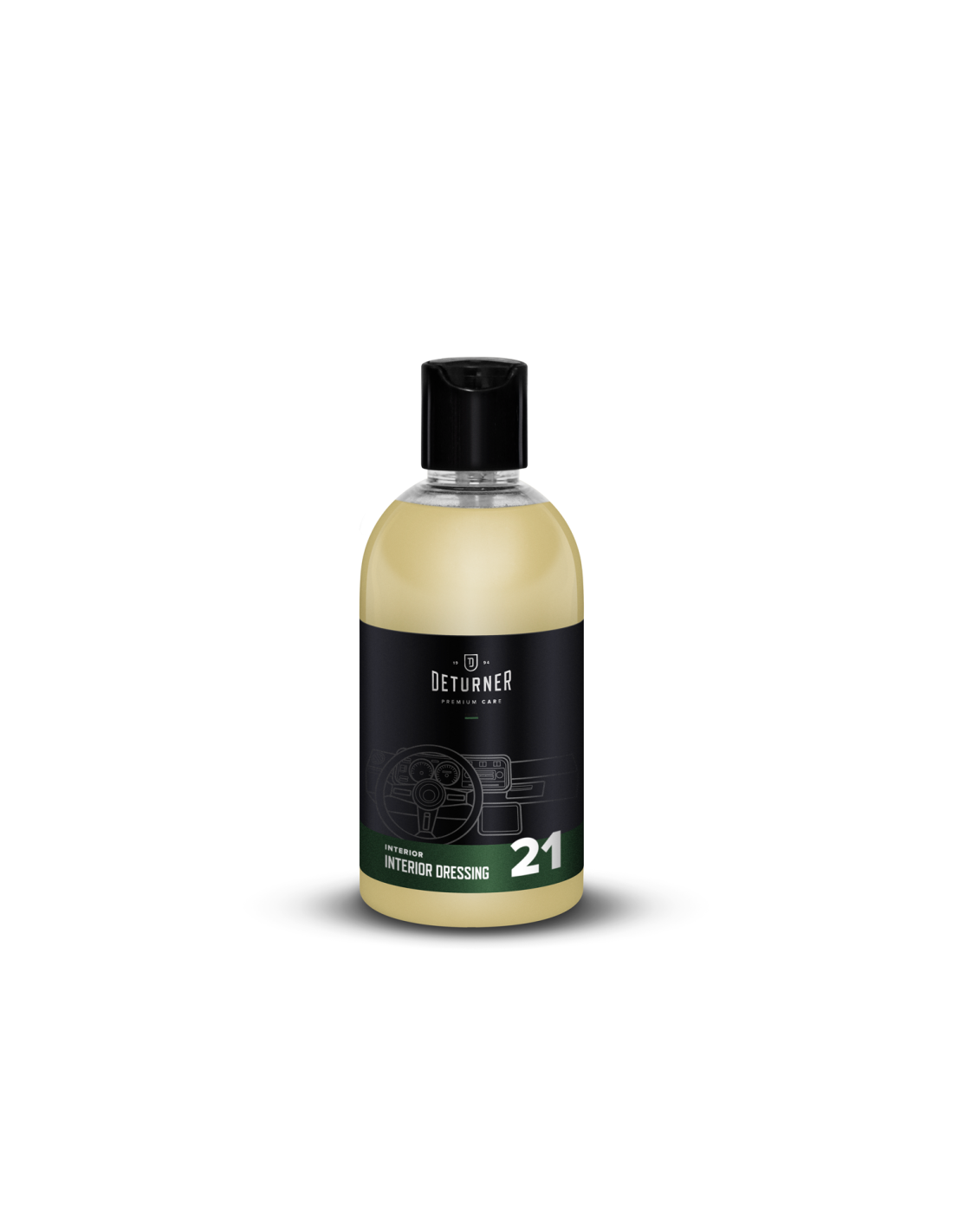 Dzięki zawartości składników ochronnych, Deturner Interior Dressing tworzy barierę przed promieniowaniem UV, przeciwdziałając blaknięciu i starzeniu się materiałów. Produkt pozostawia subtelny, przyjemny zapach, który dodatkowo poprawia komfort przebywania w samochodzie.