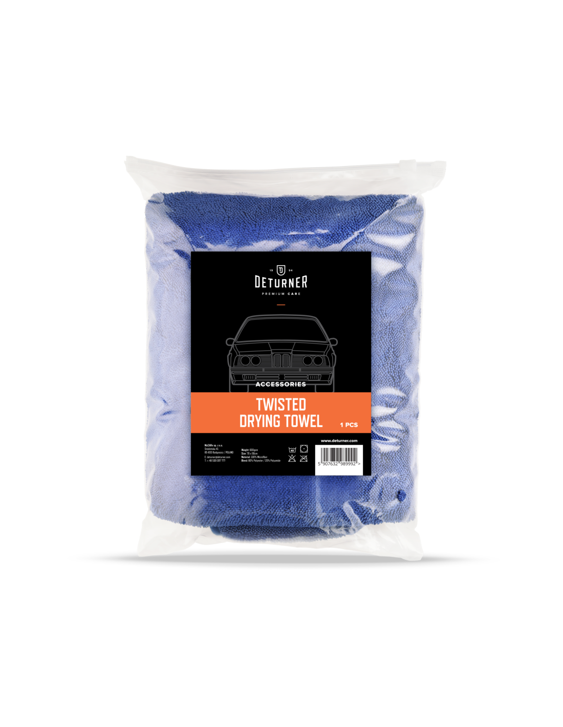 Deturner Twisted Drying Towel to wyjątkowy ręcznik stworzony z myślą o perfekcyjnym osuszaniu każdego pojazdu. Dzięki innowacyjnej technologii skręconych włókien (twisted loop), ręcznik doskonale absorbuje wodę, nie pozostawiając smug ani zacieków. Wysoka chłonność i duży rozmiar sprawiają, że osuszanie karoserii staje się szybkie, łatwe i skuteczne.