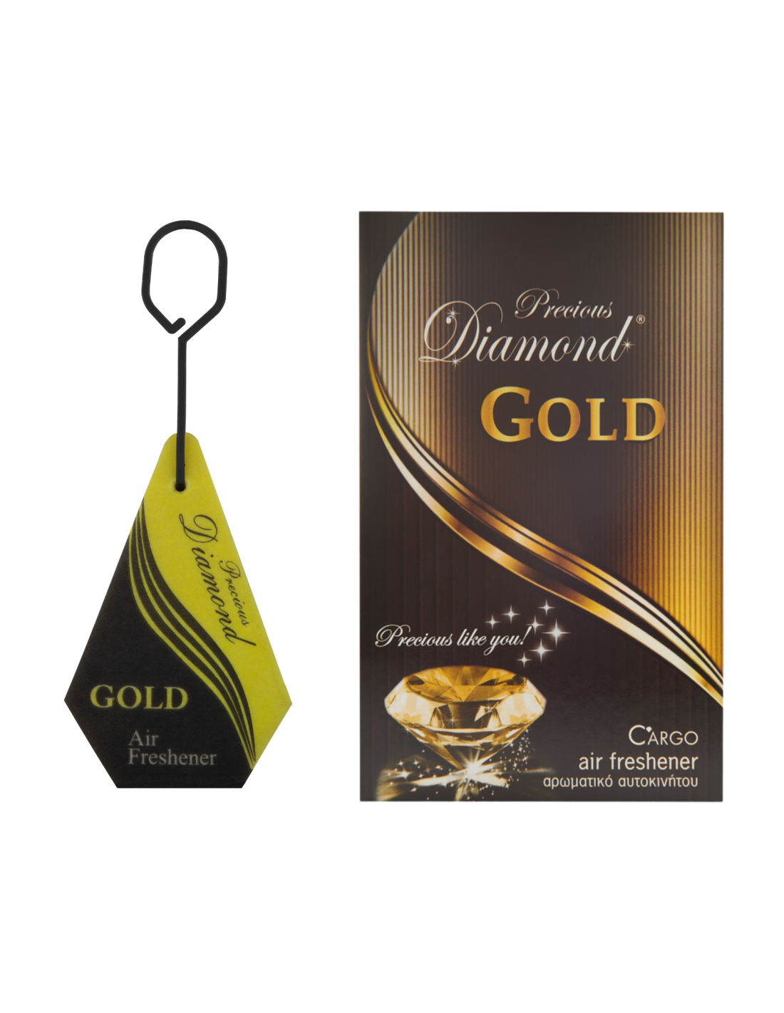 Diament Gold – zawieszka zapachowa Gold – prawdziwie złote dziecko w diamentowej rodzinie. Jeśli myślałeś, że nic Cię już nie zadziwi, Gold to zmieni. Gdy będziesz otwierał drzwi swojego auta, olśni Cię blask bajecznego skarbca