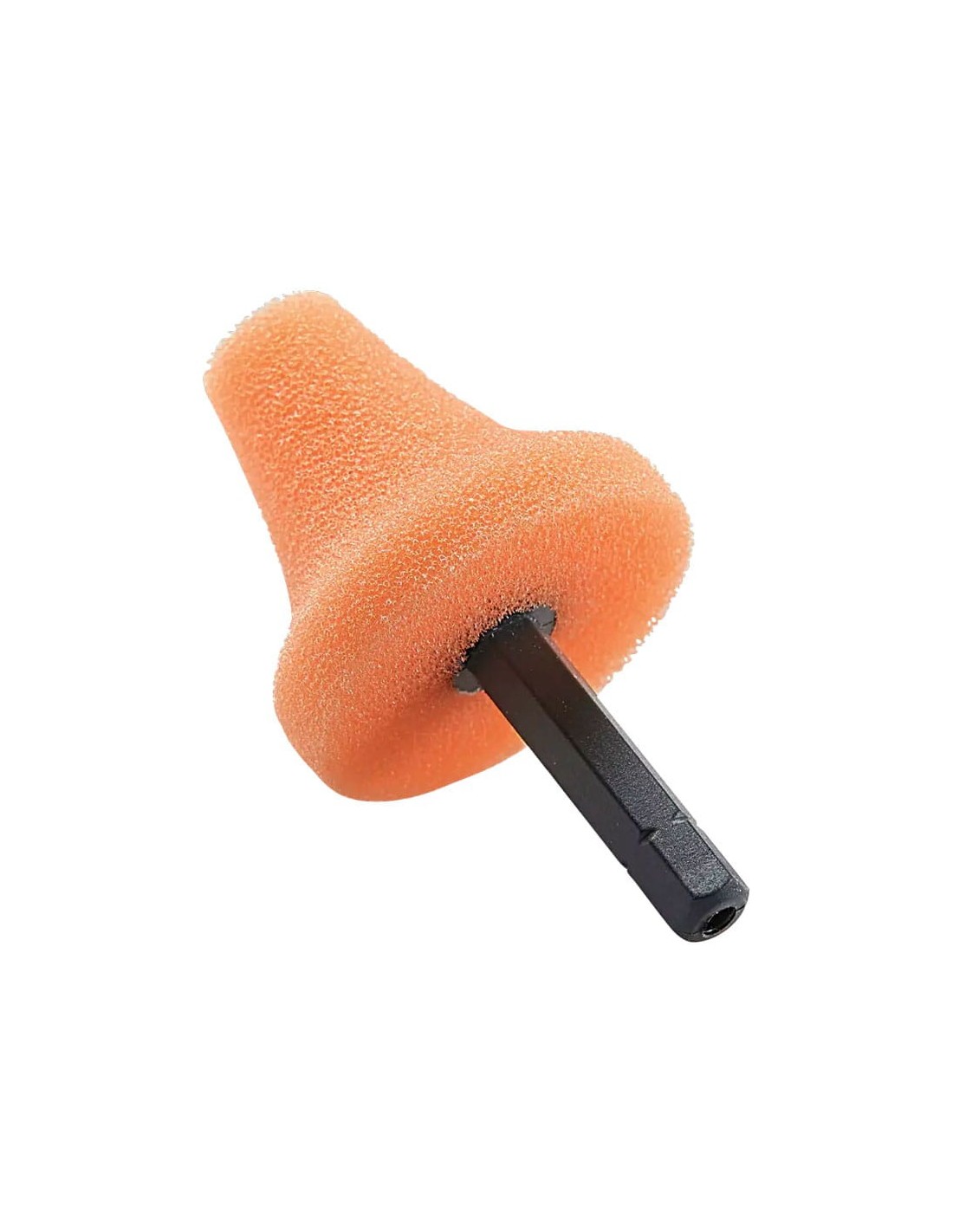 Pomarańczowa gąbka z delikatną piankową strukturą do wykończeń i wysokiego połysku. Kształt stożka idealnie nadaje się do polerowania wgłębień klamek drzwi, osłony chłodnicy, obręczy kół i wnętrz. Zaokrąglone krawędzie pozwalające unikać śladów szlifowania oraz praktyczna końcówka do polerowania w narożnikach i na krawędziach. Wymiana bez użycia narzędzi dzięki sześciokątnemu uchwytowi do końcówek na trzonku. Możliwość stosowania z wałkiem giętkim FS 140 w połączeniu z polerką PXE 80 10.8-EC.