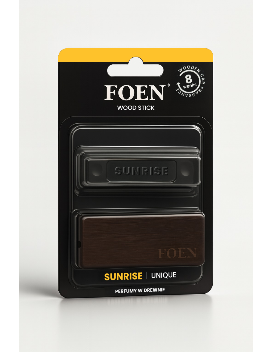 Foen Wood Stick Sunrise – świt elegancji zamknięty w drewnie Foen Wood Stick Sunrise to perfumy do samochodu montowane w kratce nawiewu, które łączą cytrusową świeżość z subtelnym, kwiatowo-kremowym finiszem. Od pierwszego momentu wypełniają wnętrze auta delikatnym światłem – jak poranek, który budzi zmysły i nadaje rytm całemu dniu. Wystarczy wpiąć drewniany stick w kratkę nawiewu, a zapach zaczyna swoją opowieść – od soczystej cytryny, zielonych nut i kremowego kokosa, przez różane serce, aż po pudrową bazę migdałów, drzewa sandałowego i wanilii. Kompozycja jest subtelna, ale trwała. Miękka, a zarazem elegancka. Piramida zapachowa Sunrise Nuta głowy: cytryna, zielone nuty, kokos, śliwka Nuta serca: róża, konwalia, fiołek Baza: migdały, drzewo sandałowe, wanilia Dlaczego warto wybrać Foen Wood Stick Sunrise? Praktyczny montaż – wystarczy wpiąć w kratkę nawiewu Harmonijny zapach – cytrusy, kwiaty i kremowa baza Minimalistyczna forma z naturalnego drewna – zero plastiku, maksimum stylu Trwałość nawet do 8 tygodni – elegancja, która zostaje Sunrise to zapach nowego początku – lekki, świeży i wyjątkowy. Każde wejście do auta staje się chwilą spokoju i przyjemności. Zapasowe odświeżacze przechowuj zawsze w chłodnym i suchym miejscu. Wysoka temperatura i wilgoć mogą osłabić ich intensywność, nawet jeszcze zanim zostaną użyte.