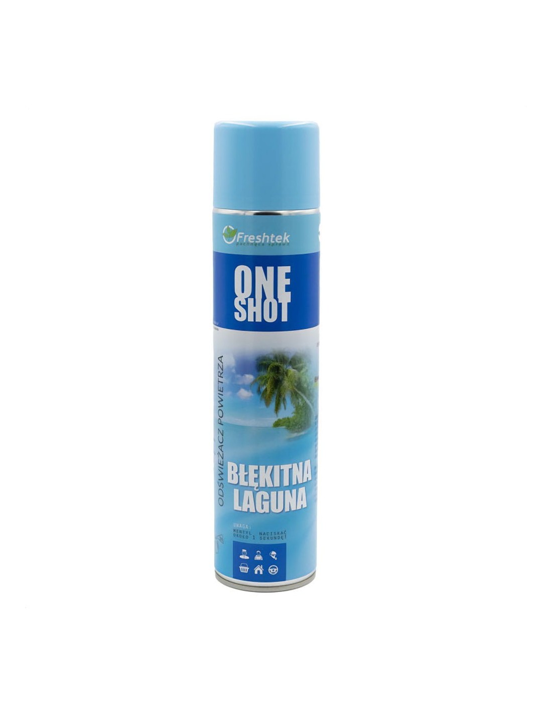 Freshtek One Shot Błękitna Laguna to profesjonalny neutralizator zapachów. Określenie "One Shot" oznacza, że wystarczy jedno przyciśnięcie spustu, aby świeży zapach rozszedł się po całym pomieszczeniu. Jest to silnie skoncentrowany aerozol, więc znakomicie nadaje się wszędzie tam, gdzie mamy do czynienia z większą powierzchnią użytkową.