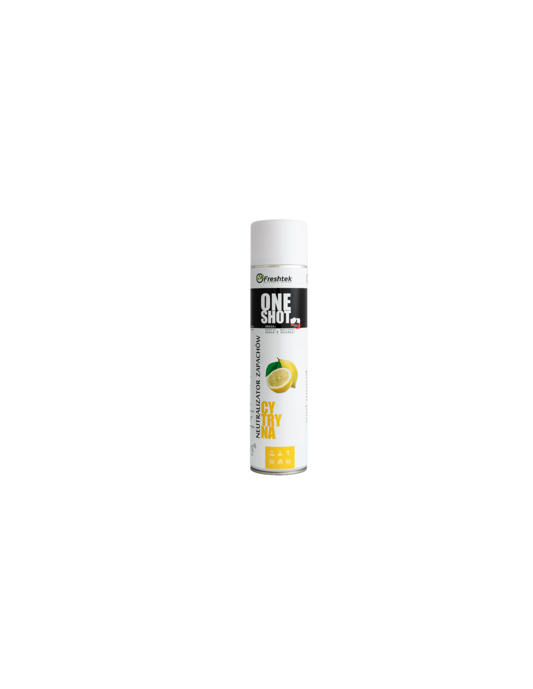 Freshtek One Shot Cytryna – środek o podwójnym działaniu – odświeżacza powietrza i neutralizatora nieprzyjemnych zapachów. Zapach dający uczucie świeżości, słońca.