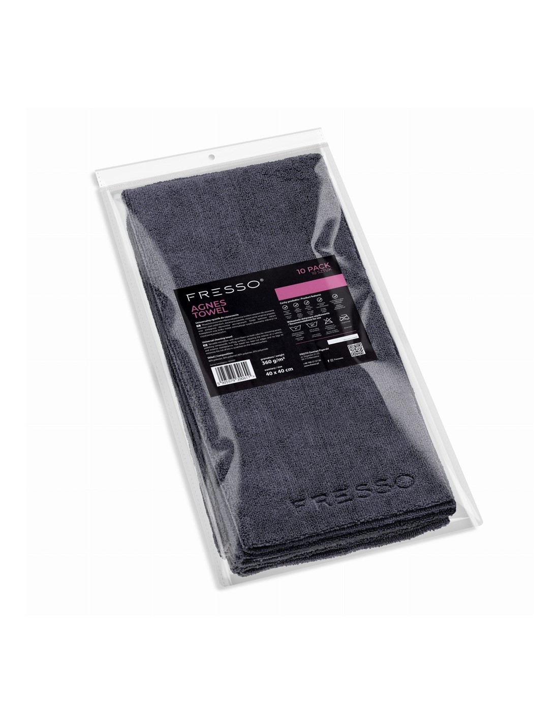 Agnes Towel to uniwersalna ściereczka z mikrofibry z krótkim włosiem po obu stronach. Nadaje się zarówno do czyszczenia wnętrza pojazdu, jak i pielęgnacji części zewnętrznych. Perfekcyjnie docierania powłoki oraz usuwa nadmiar pasty polerskiej. Szmatka do pielęgnacji samochodu posiada laserowo cięte krawędzie i jest pozbawiona metek, dzięki czemu na czyszczonych powierzchniach nie tworzą się niepożądane mikrorysy. Zalecenia Wypierz ściereczkę przed pierwszym użyciem Pierz w niskiej temperaturze Nie używaj do jej pielęgnacji wybielaczy i zmiękczaczy Nie prasuj Najważniejsze cechy produktu: Wymiary: 40x40 cm Gramatura: 360 g/m2 Delikatne, gęste włókna Krótkie włosie po obu stronach Laserowo cięte krawędzie Brak metek Nadaje się do czyszczenia zarówno wnętrza, jak i zewnętrznych części samochodu Skutecznie dociera powłoki i usuwa nadmiar pasty polerskiej Opakowanie 10szt
