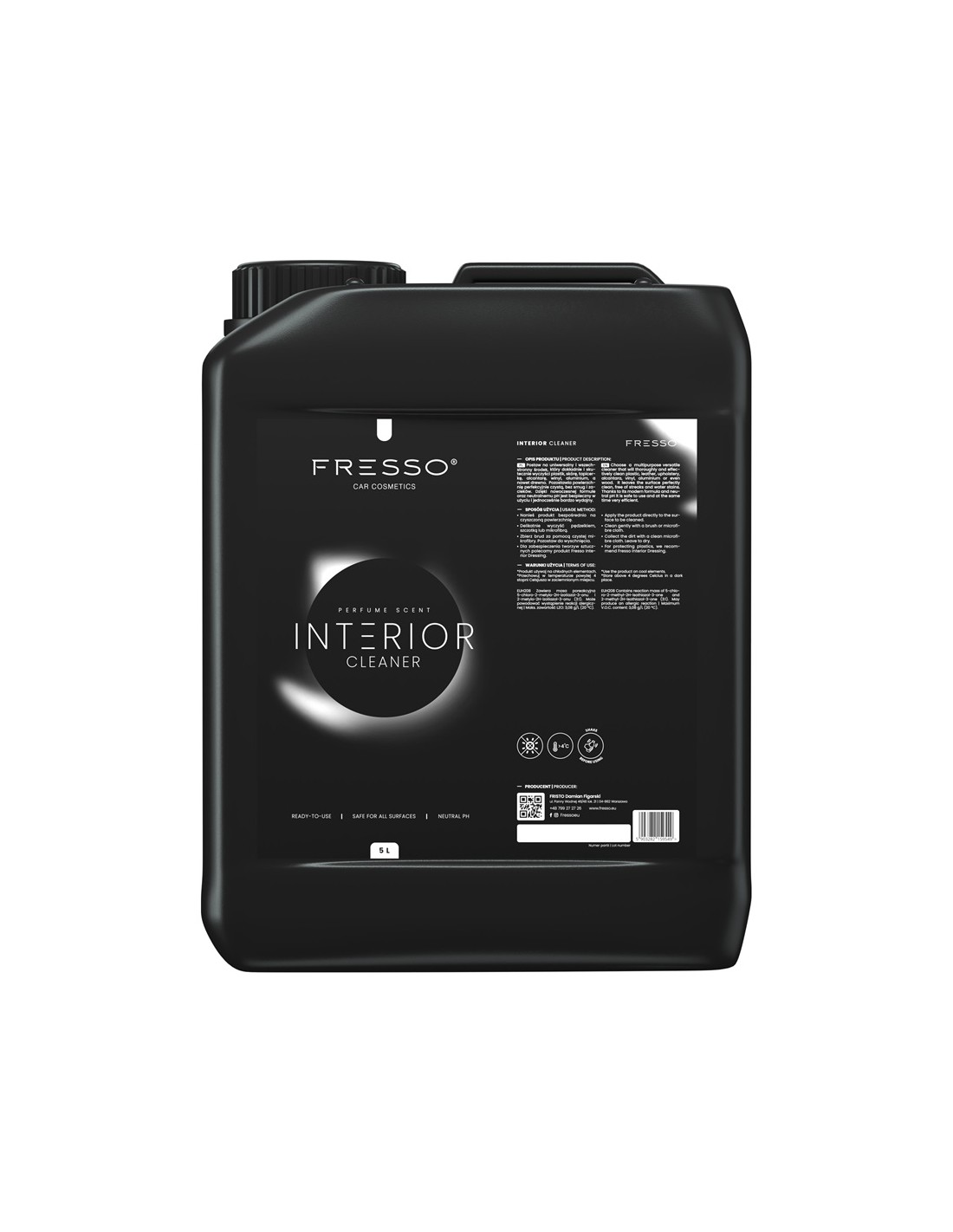 Postaw na uniwersalny i wszechstronny środek, który dokładnie i skutecznie wyczyści plastik, skórę, tapicerkę, alcantarę, winyl, aluminium, a nawet drewno. Pozostawia powierzchnię perfekcyjnie czystą, bez smug i zacieków. Dzięki nowoczesnej formule oraz neutralnemu pH jest bezpieczny w użyciu i jednocześnie bardzo wydajny. Przyjemny, perfumowany zapach utrzymuje się na czyszczonej powierzchni, umilając chwile spędzone w samochodzie, ale nie tylko... Doskonale sprawdzi się również w domu, do czyszczenia blatów wykonanych z drewna, marmuru czy granitu, a także płytek, armatury, aluminium oraz mebli. Dzięki swojej wyjątkowej formule pozostawia powierzchnię całkowicie gładką, minimalizując ponowne osadzanie się kurzu i innych zabrudzeń. Cechy produktu: Gotowy do użycia Wszechstronne zastosowanie Czyści tapicerkę, skórę, plastiki, alcantarę, gumę, winyl, aluminium, drewno Neutralne pH Nie odbarwia, nie pozostawia smug ani osadu. Nie pozostawia lepkich pozostałości ( Bezpieczny w użyciu Świetnie nadaje się do czyszczenia zabrudzeń w domu/biurze (blatów drewnianych, marmurowych, płytek, armatury, mebli, aluminium) - Dzięki swojej wyjątkowej formule pozostawia powierzchnię całkowicie gładką, minimalizując ponowne osadzanie się kurzu i innych zabrudzeń. Zapach perfumowany Cytrusowo-aromatyczny. Archetyp czystości i eterycznej wręcz świeżości. Cytryna w rewolucyjnej zielonej kwaśności w połączeniu z piżmem sprawiają, że jest to zapach niezapomniany. Delikatne akordy subtelnych, pudrowych kwiatów i owoców wzbogacają wrażenie przyjemnego odświeżenia i powodują, ze zapachowi ciężko się oprzeć. Sposób użycia Nanieś produkt bezpośrednio na czyszczoną powierzchnię. Delikatnie wyczyść pędzelkiem, szczotką lub mikrofibrą. Zbierz brud za pomocą czystej mikrofibry. Pozostaw do wyschnięcia. Dla zabezpieczenia tworzyw sztucznych polecamy produkt Fresso Interior Dressing. Produkt używaj na chłodnych elementach. W przypadku trudniejszych zabrudzeń, po aplikacji pozostaw produkt na około minutę. Przechowuj w temperaturze powyżej 4 stopni Celsjusza w zaciemnionym miejscu Pojemność 5L