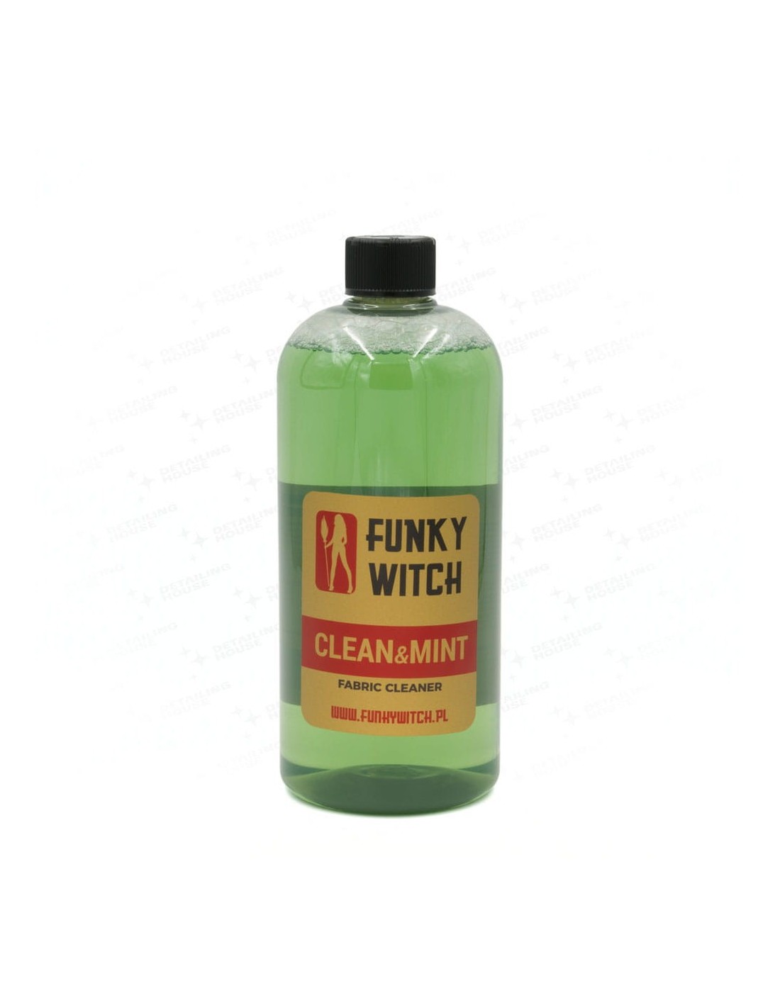 Funky Witch Clean&Mint Fabric Cleaner – to gotowy produkt do czyszczenia tapicerki materiałowej, podsufitki i dywaników. Bezpieczny i łatwy w użyciu. Nie wymaga wymywania, pozostawia świeży zapach mięty. Doskonały do pracy z tornadorem w rozcieńczeniu 1:3-1:5. Może się sprawdzić jako pre-spray w praniu ekstrakcyjnym.