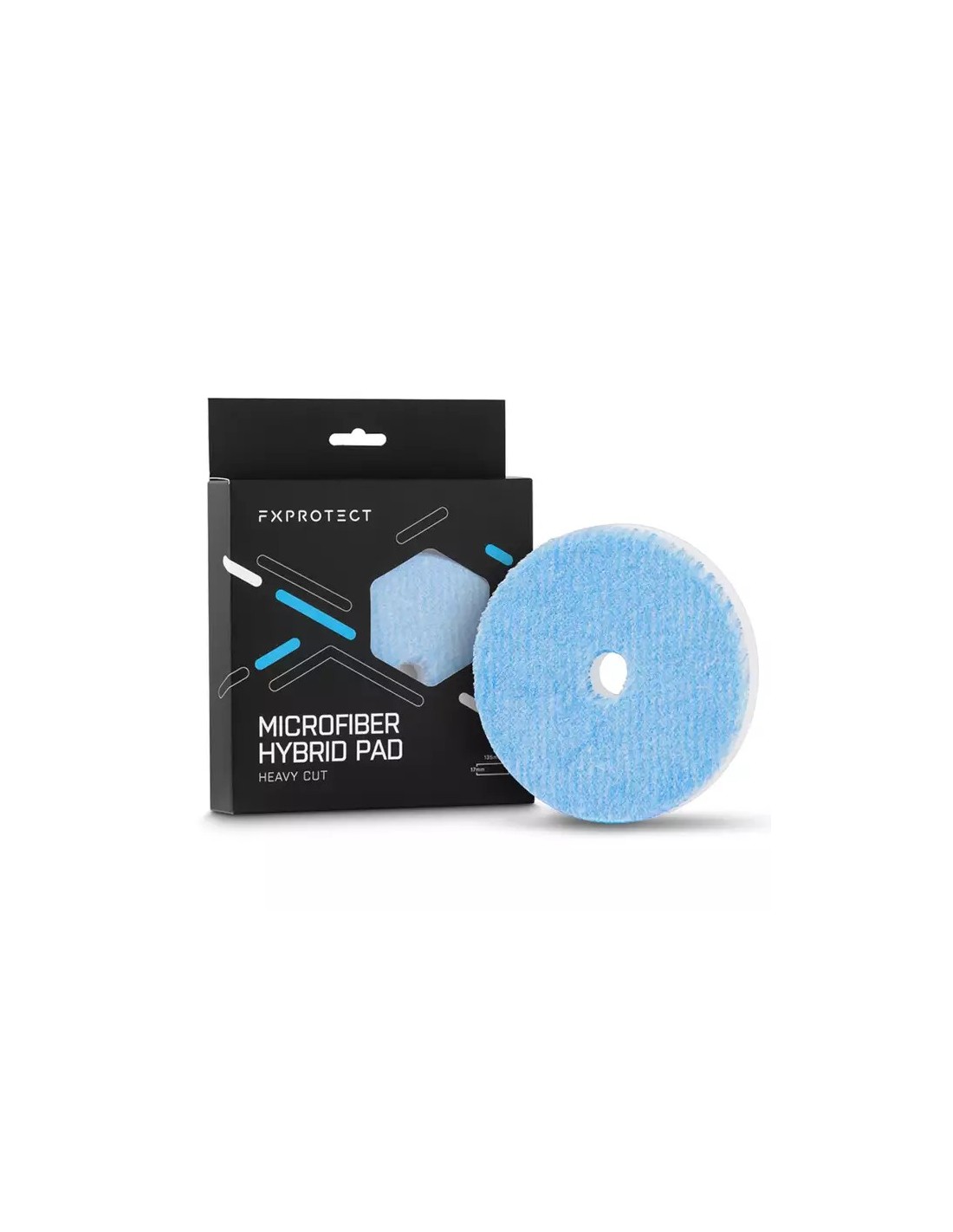 FX Protect Microfiber Hybrid Pad Heavy Cut – to hybrydowy pad polerski o silnych właściwościach tnących. Wykonany jest dwóch rodzajów włókien – białe (cutting) oraz niebieskie (finishowe).