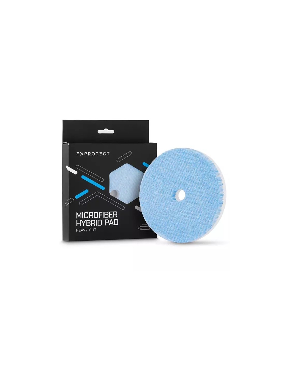 FX Protect Microfiber Hybrid Pad Heavy Cut – to hybrydowy pad polerski o silnych właściwościach tnących. Wykonany jest dwóch rodzajów włókien – białe (cutting) oraz niebieskie (finishowe).