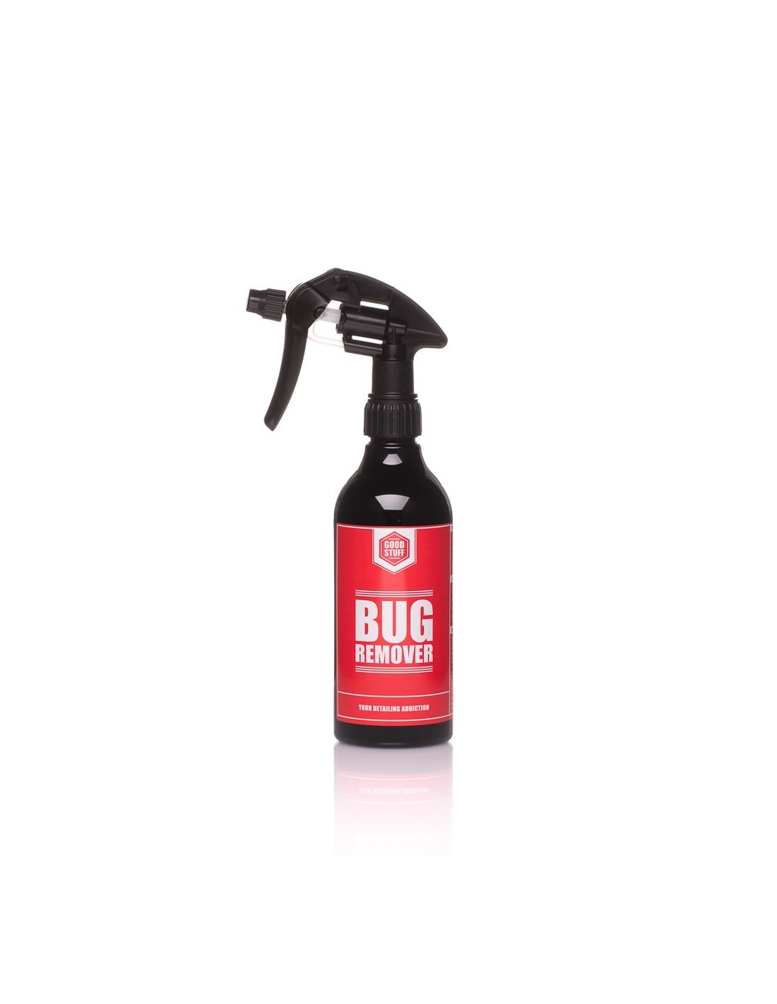 Good StuffGood Stuff Bug Remover – produkt do usuwania owadów z karoserii auta. Środek jest bezpieczny dla wszystkich powierzchni. Można go stosować zarówno na lakier, plastik, jak i szkło. Bug Remover nie narusza wcześniej nałożonych powłok oraz wosków. Preparat jest niezwykle łatwy w użyciu oraz dobrze się wypłukuje. Wystarczy spryskać karoserie i odczekać 30 sekund, a następnie spłukać czyszczone elementy pod ciśnieniem. Dodatkowo wzbogacony o przyjemny zapach kiwi i winogrona w celu poprawy komfortu pracy.
