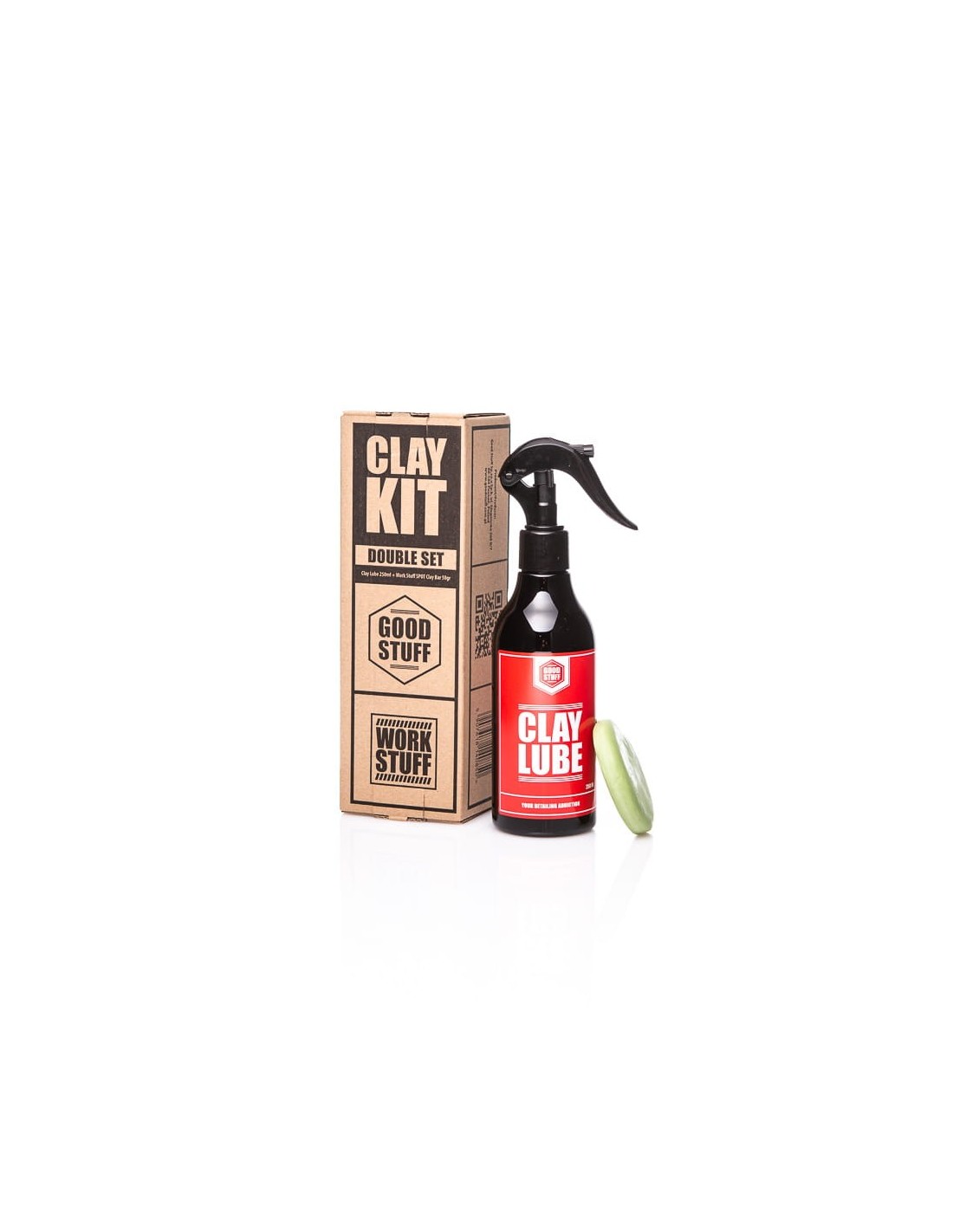 Good Stuff Clay Kit – zestaw do glinkowania lakieru. W specjalnie przygotowanym BOXie znajdują się 2 produkty detailingowe. Lubrykant nadający poślizg marki Good Stuff oraz glinka średniej twardości marki Work Stuff. Za pomocą produktów można wykonać pełną dekontaminację lakieru.