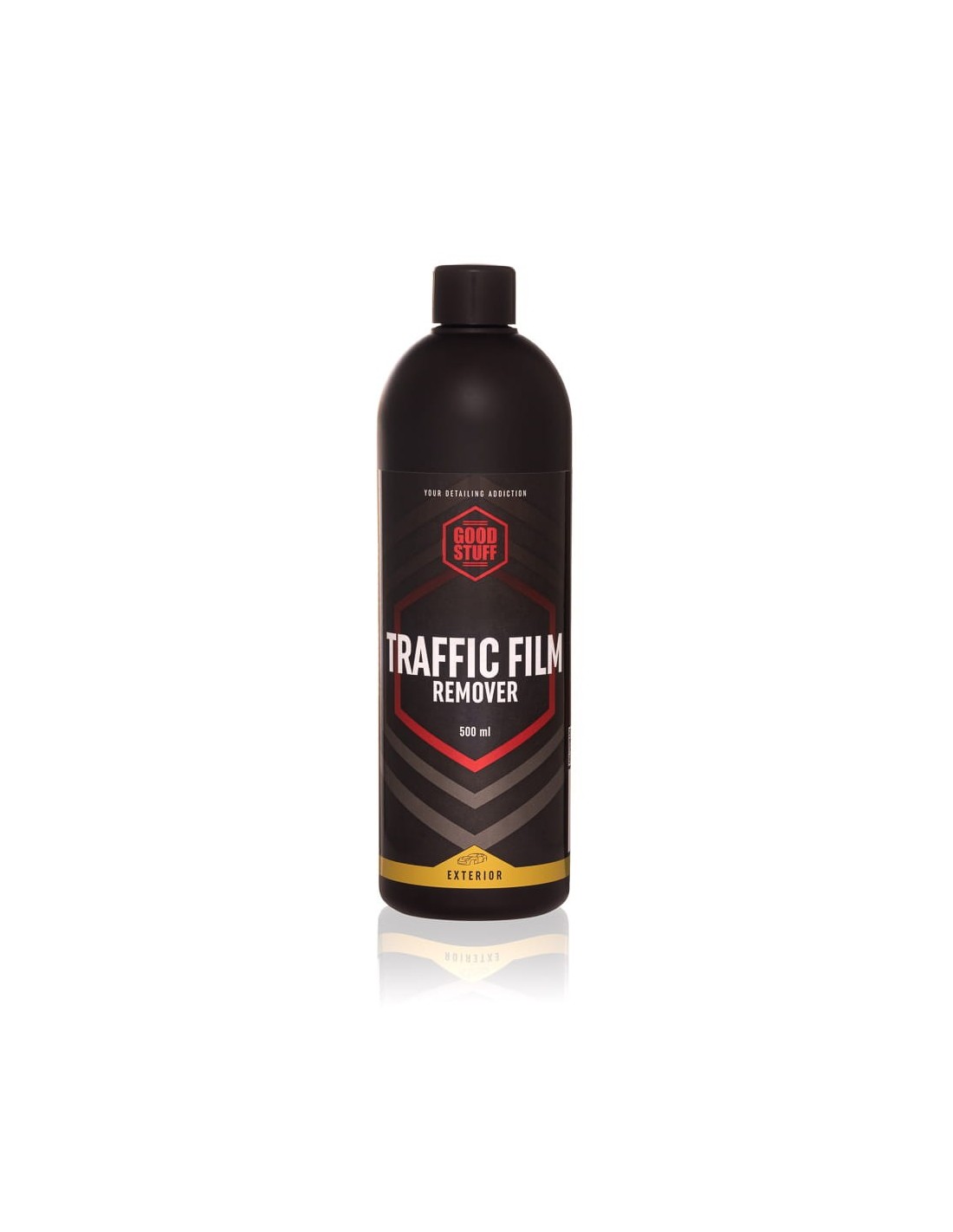 Good Stuff Traffic Film Remover – koncentrat do mycia wstępnego lakieru oraz felg w formie oprysku. Usuwa film drogowy zbierający się na karoseri w trakcie jazdy i przygotowuje pojazd do mycia właściwego. W przeciwieństwie do piany aktywnej preparat nanosimy w formie oprysku za pomocą opryskiwacza ciśnieniowego. Produkt rozpuszcza brud zdecydowanie szybciej (około 2-5 m) i jest mocniejszą alternatywą dla klasycznej piany aktywnej. TFR jest całkowicie bezpieczny dla lakieru oraz felg. Może być stosowany na samochody z nałożoną powłoką. Dodatkowo dobrze radzi sobie z pozostałościami po owadach i innych zanieczyszczeniach na lakierze.