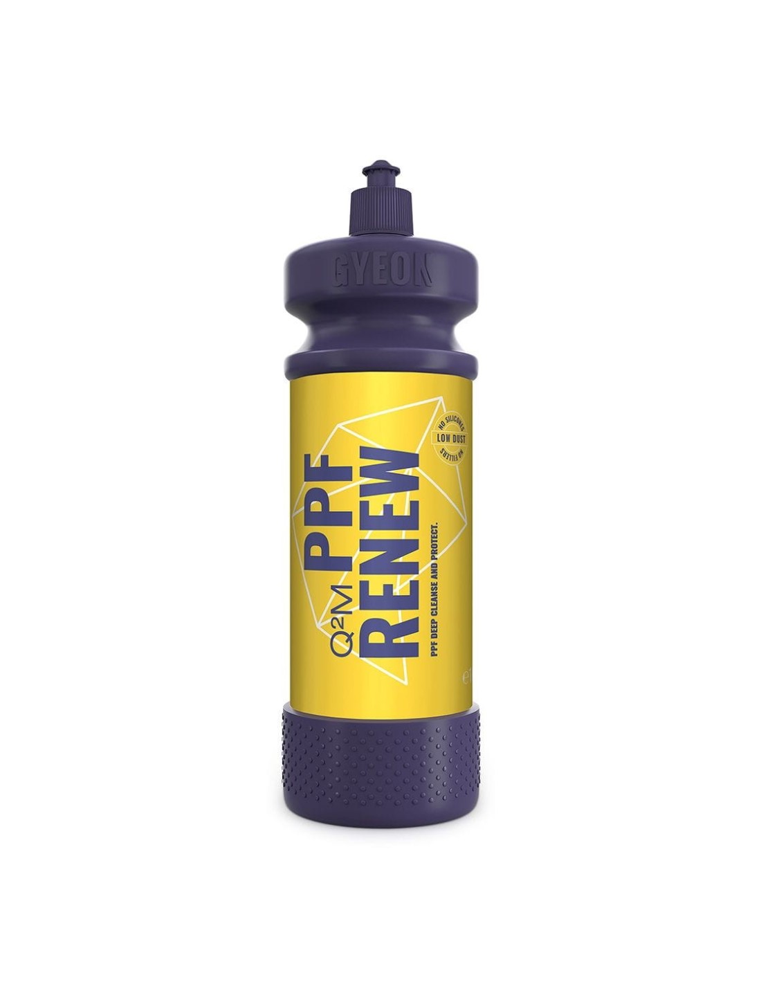 Gyeon Q2M PPF Renew – pielęgnacja folii ochronnych nigdy nie była taka prosta. Q²M PPF Renew to połączenie lekkich cząsteczek ściernych z zabezpieczającymi dodatkami, tworzącymi filtr promieniowania UV. Ten produkt można stosować ręcznie lub maszynowo, aby usunąć utlenienia i naloty tworzące mgiełkę i pozostawić gładką i błyszczącą powierzchnię. Jest to pierwszy na świecie produkt do pielęgnacji folii zawierający krzem i zaprojektowany od podstaw, aby działać na wszystkich rodzajach folii ochronnych do lakieru, z uwzględnieniem tych o zdolnościach samoregeneracyjnych.