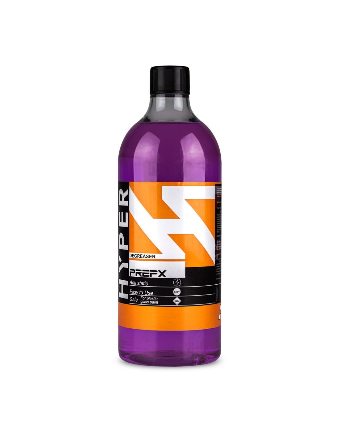 Hyper PrepX Degreaser – skuteczny, ale nie agresywny produkt do usuwania pozostałości po pastach polerskich. Zawarte składniki przygotowują lakier przed aplikacją powłok ceramicznych, wosków itp. Skuteczne odtłuszczenie pozwala zabezpieczeniom na mocne związanie z powierzchnią. Szybko odparowuje z powierzchni. Skutecznie czyści szyby i lustra.