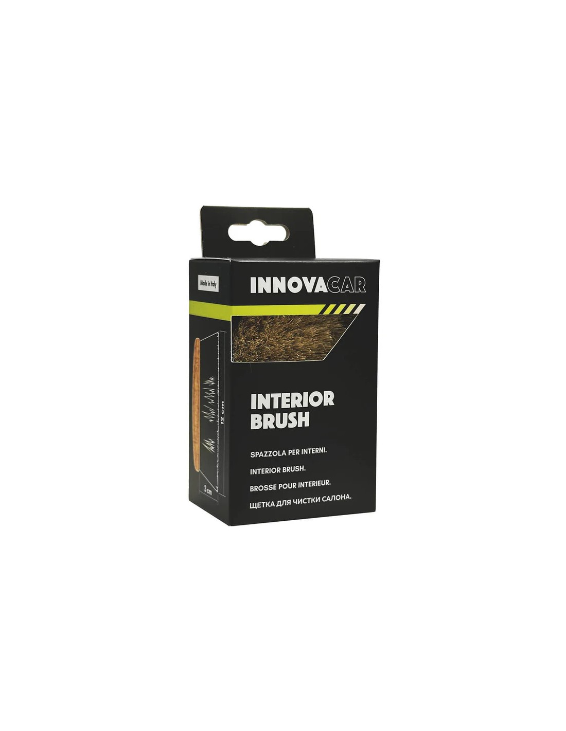 Interior Brush od Innovacar to szczotka do dokładnego czyszczenia wnętrza samochodu, wykonana również z naturalnych surowców, odpowiednich do różnych powierzchni. Główne cechy: Bardzo wygodnia w obsłudze: ergonomiczny kształt ułatwia użytkowanie, zapewniając płynniejsze ruchy, zmniejszając wysiłek potrzebny podczas czyszczenia wnętrza samochodu; Większa kontrola: zaokrąglony uchwyt, który dopasowuje się do naturalnej krzywizny dłoni oraz dwa boczne rowki zapewniają pewny chwyt i większą stabilność; Średnio miękkie włosie: średnio miękkie włosie jest również pochodzenia naturalnego, do delikatnego czyszczenia materiałów premium, a w razie potrzeby również dogłębnego czyszczenia miękkich materiałów; Wytrzymała i trwała: trzonek i włosie wykonane w 100% z europejskiego drewna bukowego, certyfikowanego przez FSC, jest odporne na wodę i środki czyszczące, dzięki czemu szczotka jest trwała i chroniona przed zniszczeniem; Wielofunkcyjna: szczotka nadaje się do wszystkich materiałów wewnątrz samochodu i może być stosowana do skóry, tkanin, dywaników, tworzyw sztucznych, dywaników gumowych i plastikowych wykładzin bagażnika; Idealna do czyszczenia narożników: kształt włosia i uchwytu sprawiają, że ta szczotka idealnie dociera do szczelin i trudno dostępnych zakamarków, dzięki czemu jest idealnym narzędziem do czyszczenia wnętrz; Wyprodukowano we Włoszech: w przeciwieństwie do wielu szczotek dostępnych na rynku, ta szczotka jest w całości wyprodukowana we Włoszech; Właściwości: Kolor włosia: beżowy; Wymiary całkowite: 12 x 8 cm; Wymiary rączki: 11 x 6 cm; Długość włosia: 3 cm; Materiał włosia: włosie końskie i poliester.