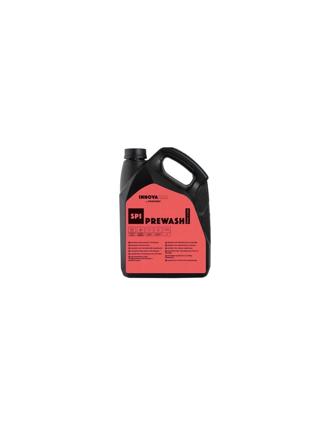 Innovacar SP1 Prewash – to najbardziej odpowiedni środek do mycia wstępnego samochodu do usuwania dużej ilości zabrudzeń bez dotykania karoserii samochodu. To dopracowane rozwiązanie, które niezależnie od pH 11,50 gwarantuje bezpieczne stosowanie na delikatnych częściach samochodu, pozwalając na pewną pracę.