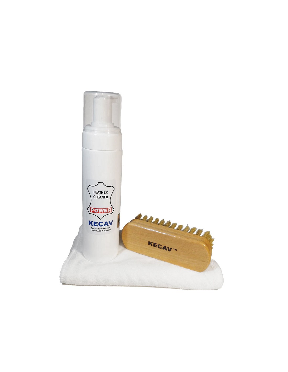 Zestaw Leather Cleaner Power jest kompletnym zestawem przeznaczonym do wyczyszczenia mocno zabrudzonej tapicerki. Leather cleaner Power jest mocnym i bardzo skutecznym środkiem czyszczącym, przeznaczonym do czyszczenia skór gładkich. Znajduje zastosowanie w czyszczeniu mocno zabrudzonych skór naturalnych i sztucznych, usuwając uporczywe plamy i zabrudzenia z czyszczonej powierzchni. Power daje wyjątkowo gęstą i bardzo trwałą pianę, minimalizując możliwość przemaczania skóry podczas procesu czyszczenia. Nie stosować do skór otwartych i szorstkich: weluru, nubuku, aniliny itp. Nie stosować do bieżącej pielęgnacji. Do lekkich zabrudzeń należy używać Leather Cleaner Light. Produkt wolny od alergenów!!! Sposób użycia: Wstrząsnąć przed użyciem i sprawdzić działanie środka w niewidocznym miejscu. Nanieść pianę na szczoteczkę i okrężnymi ruchami czyścić skórę. Po zakończeniu, nadmiar piany zetrzeć miękką szmatką i wytrzeć do sucha. Nigdy nie nanosić piany bezpośrednio na czyszczoną powierzchnię. W razie potrzeby, powtórzyć aplikację. Przechowywać w temperaturze 10-35°C. Zawartość zestawu: Leather Cleaner Power 230ml w pianowniczce szczoteczka Medium biała ściereczka z mikrofibry